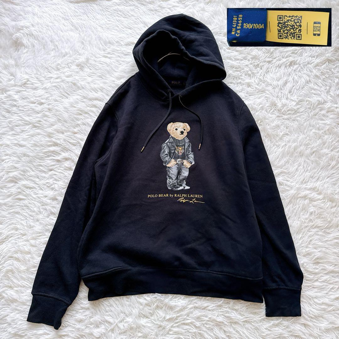 パーカー フーディ スウェット 長袖 革ジャン ポロベア プリント 現行モデル QRタグ付き