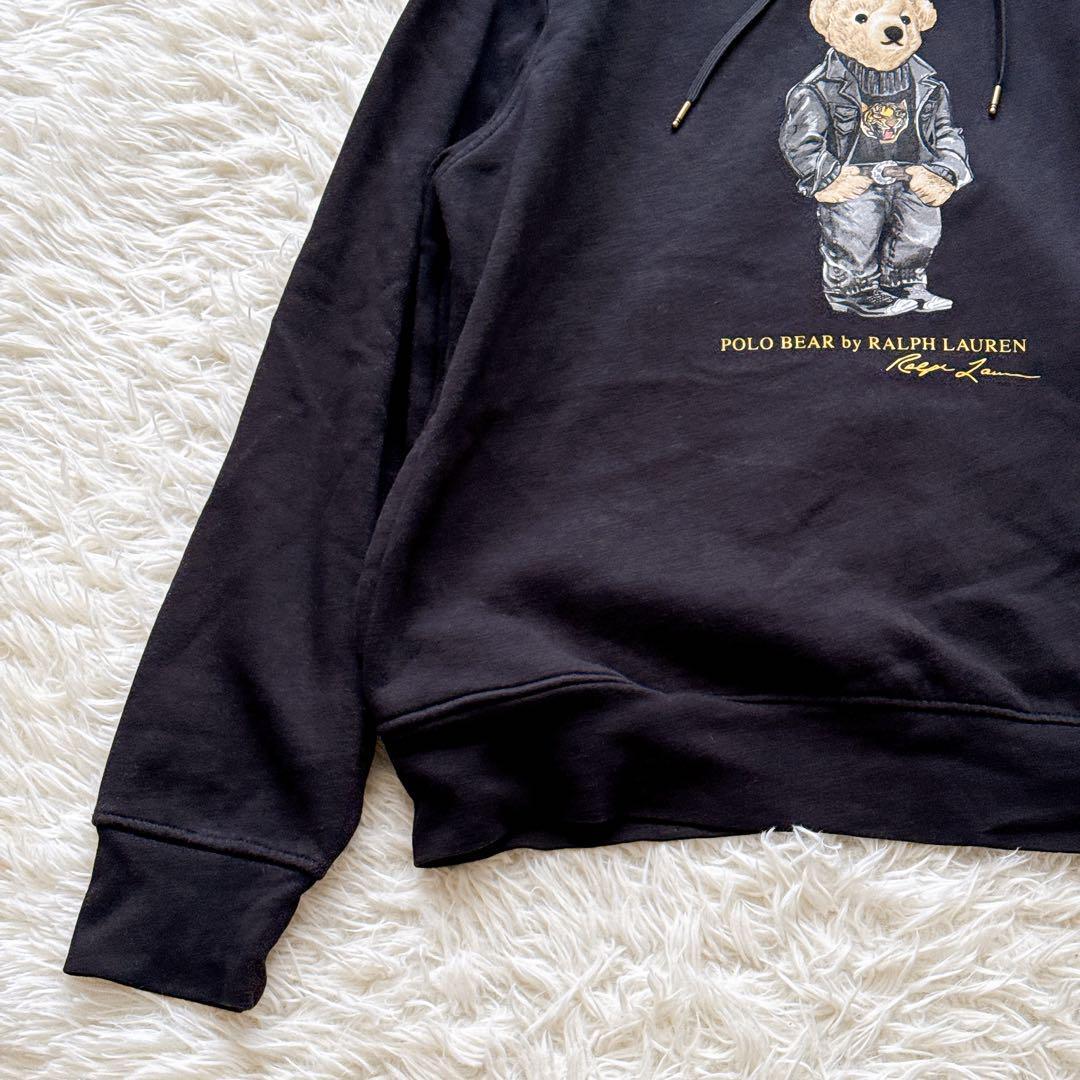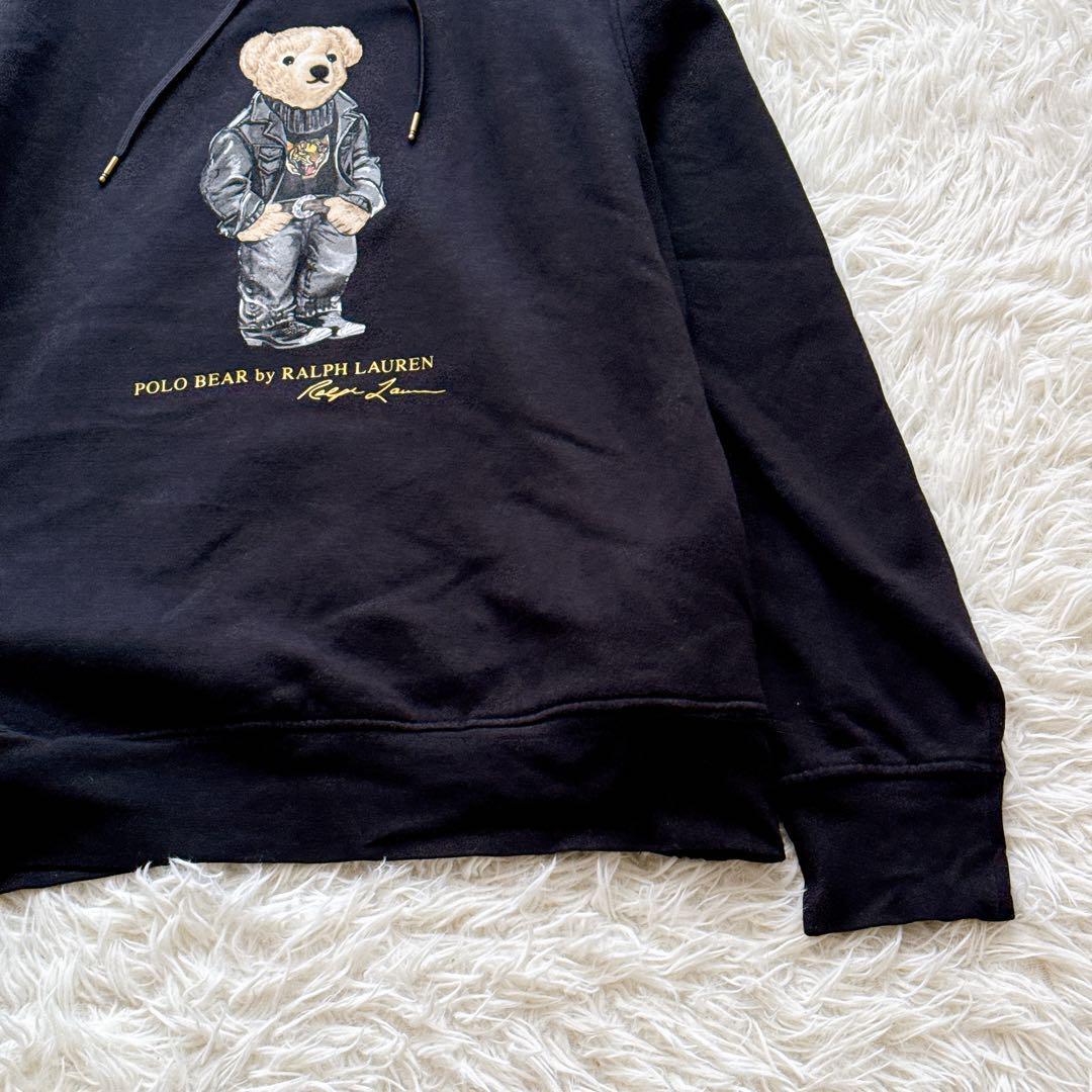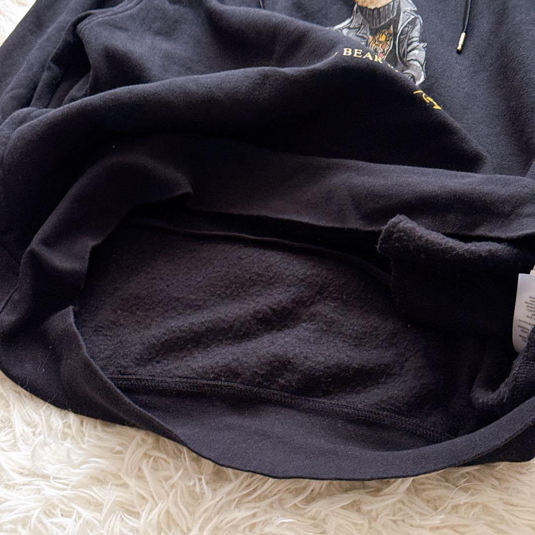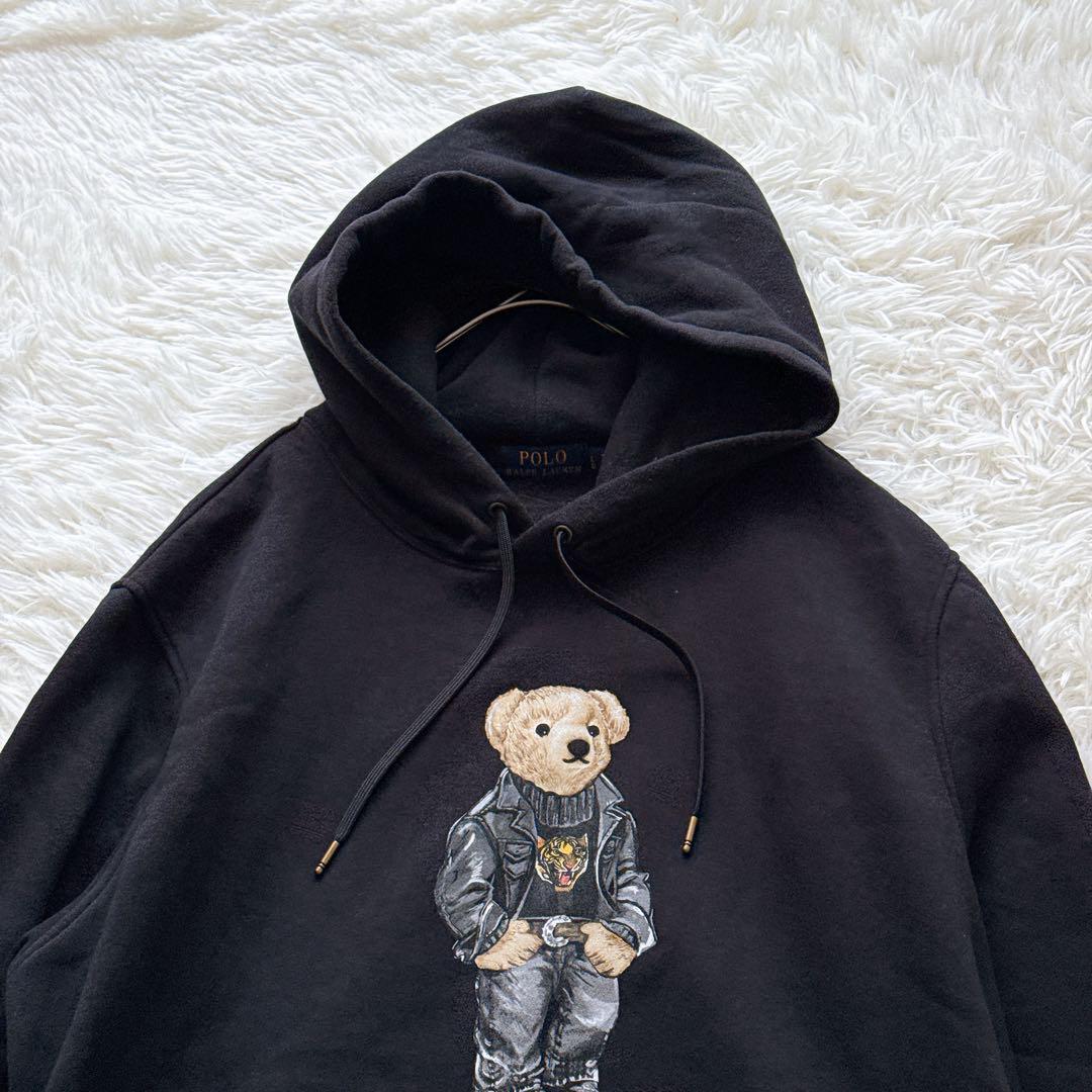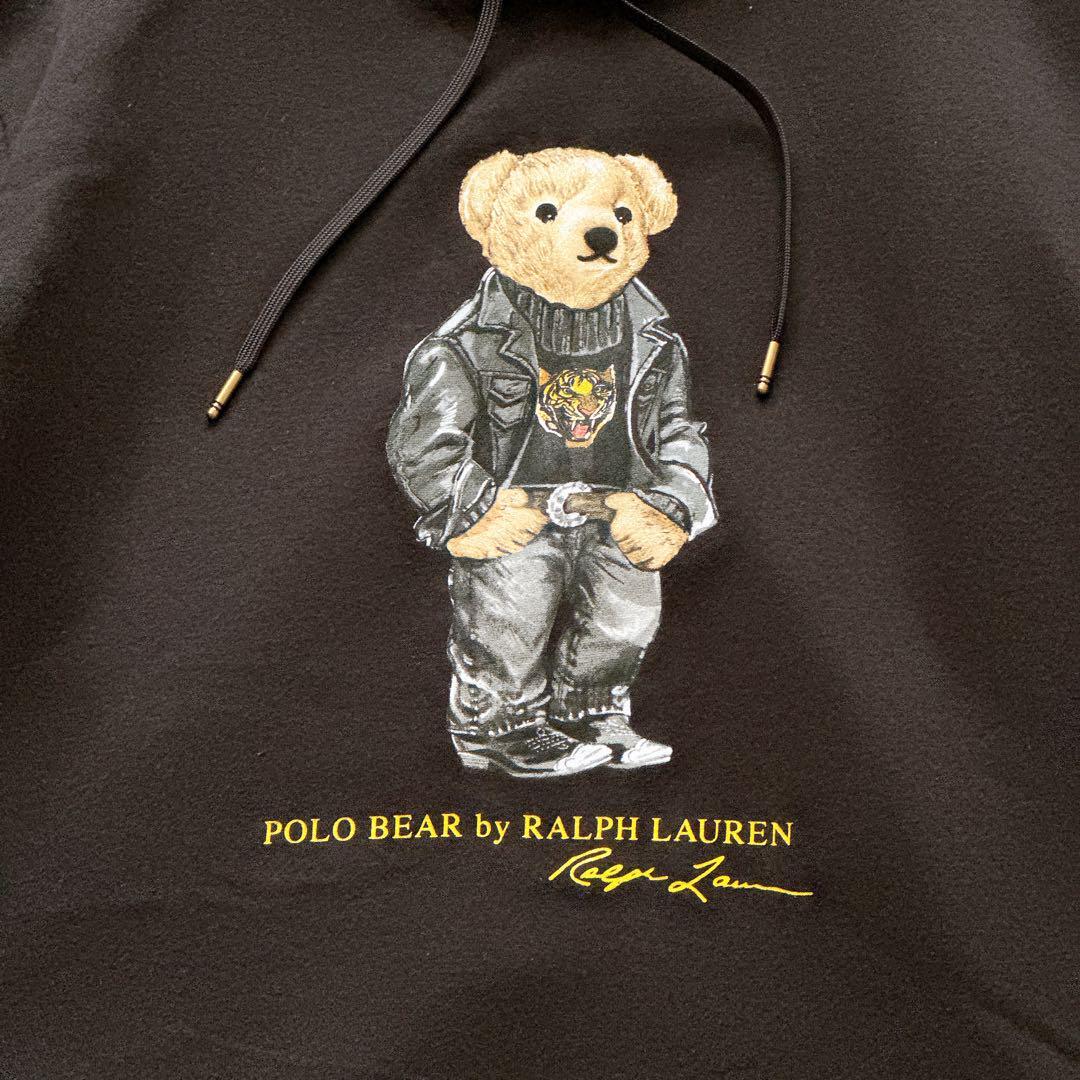 POLO RALPH LAUREN ポロラルフローレン ポロベア 革ジャンベア レザーライダース プリントパーカー プルオーバー フーディ スウェット 裏起毛 ブラック 黒 メンズ レディース ユニセックス 長袖 現行タグ QRタグ 正規品 秋冬 防寒
