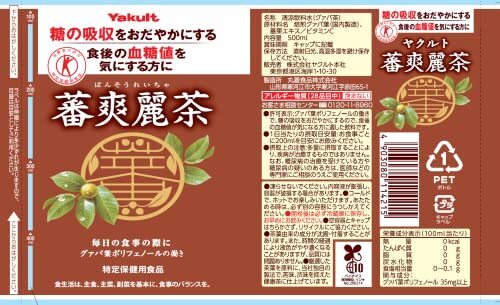 商品紹介 蕃爽麗茶に配合されているグァバ葉ポリフェノールの働きで、糖の吸収をおだやかにするので、食後の血糖値が気になる方に適した飲料です。 グアバ葉ポリフェノールは緑茶等のお茶には存在せず、ポリフェノール類の中でも特有の物質です。 グアバ葉ポリフェノールにはヒトの消化酵素の働きを阻害する働き(血糖値上昇抑制作用)があり、食事から摂ったデンプンの分解が抑制され、食後血糖値の上昇を抑制する作用があります。 安全警告 ペットボトルを開封後は冷蔵庫で保存してください。開封後は7日間で消費してください。