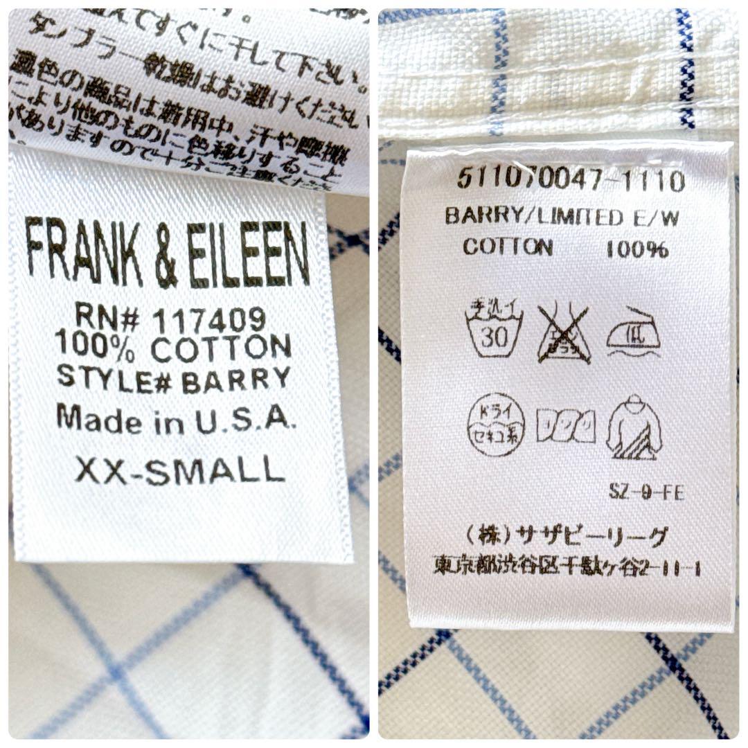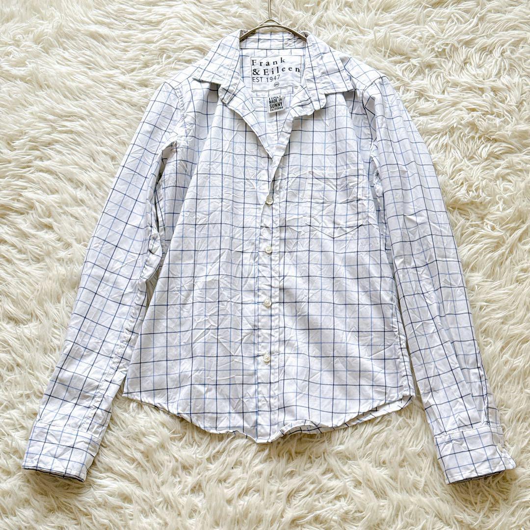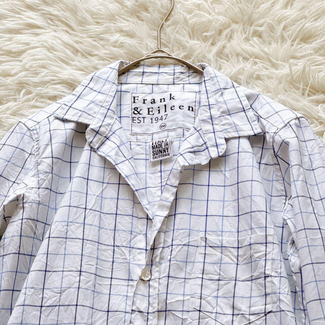 フランクアンドアイリーン FrankEileen BARRY スキッパーシャツ チェック柄 長袖シャツ コットンシャツ 薄手シャツ 羽織り 春夏秋 XXS XS S ホワイト ネイビー 正規品 レディース トップス カジュアルシャツ ウィンドウペン MadeinUSA