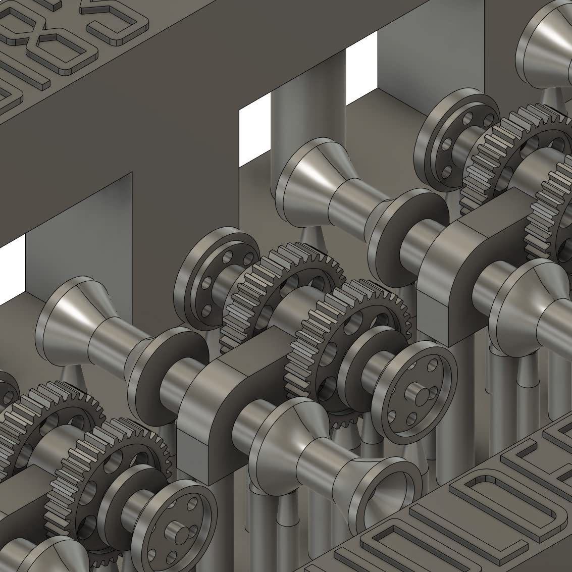 サイズ:H=2.142mm (歯車上部まで), W=6.015mm (全軸両端間), D=3.306mm (歯車含む)