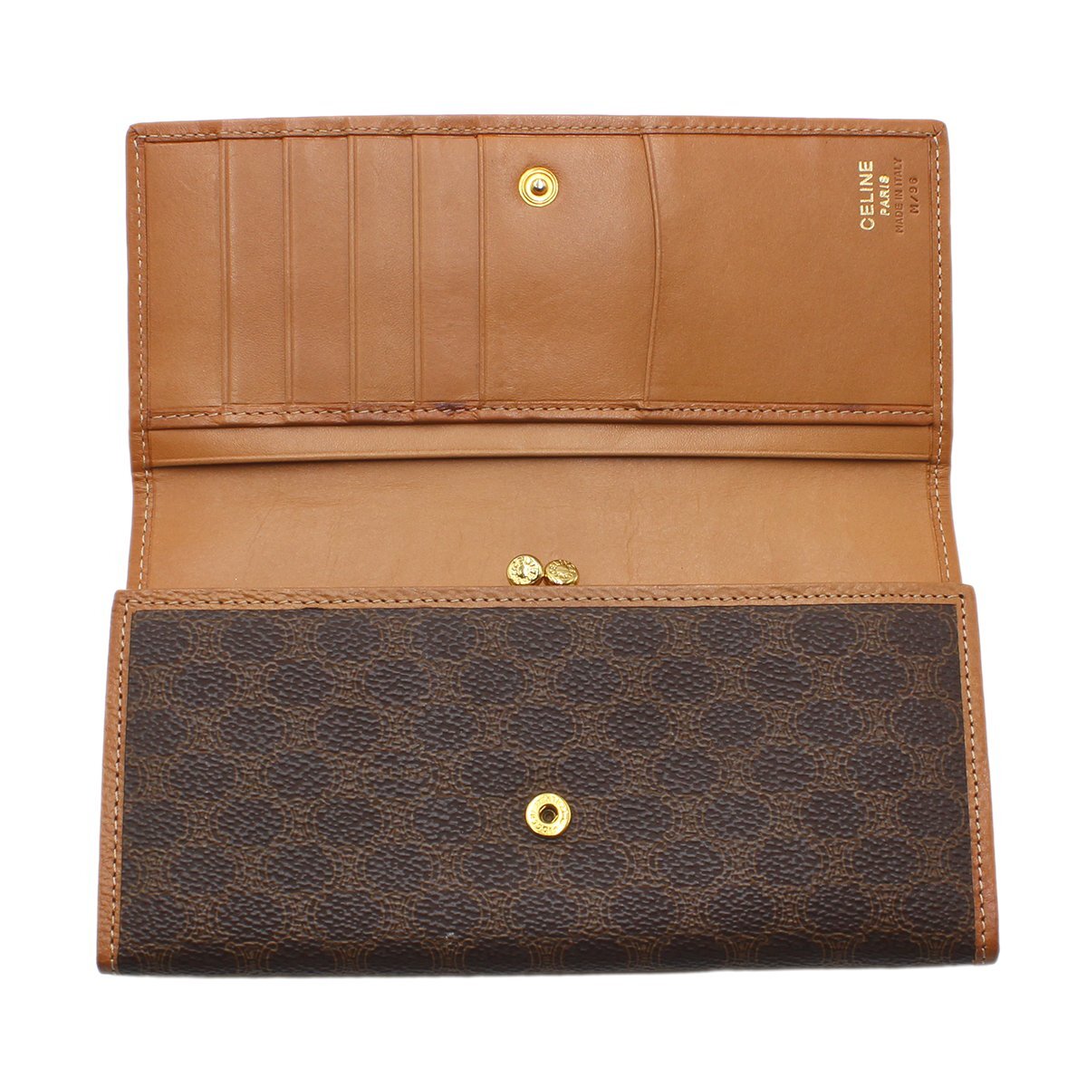 商品説明 | 【商品情報】 ブランド:セリーヌ 商品:マカダム柄 二つ折り長財布 原産国:イタリア シリアル/刻印:M/96 カラー:ブラウン×ゴールド金具 素材/ライン:PVCキャンバス×レザー サイズ(約):W18.5 x H10.0 x D2.5 (cm) 付属品:-- ランク:外側 A 内側 A 【詳細説明】 外側:レザー部分に若干の薄汚れやスレがございますが、その他目立つダメージなく綺麗な状態です。 内側: 若干の薄汚れやスレがございますが、その他目立つダメージなく綺麗な状態です。 *写真の色味が実物と異なる場合がございますのでご了承ください。