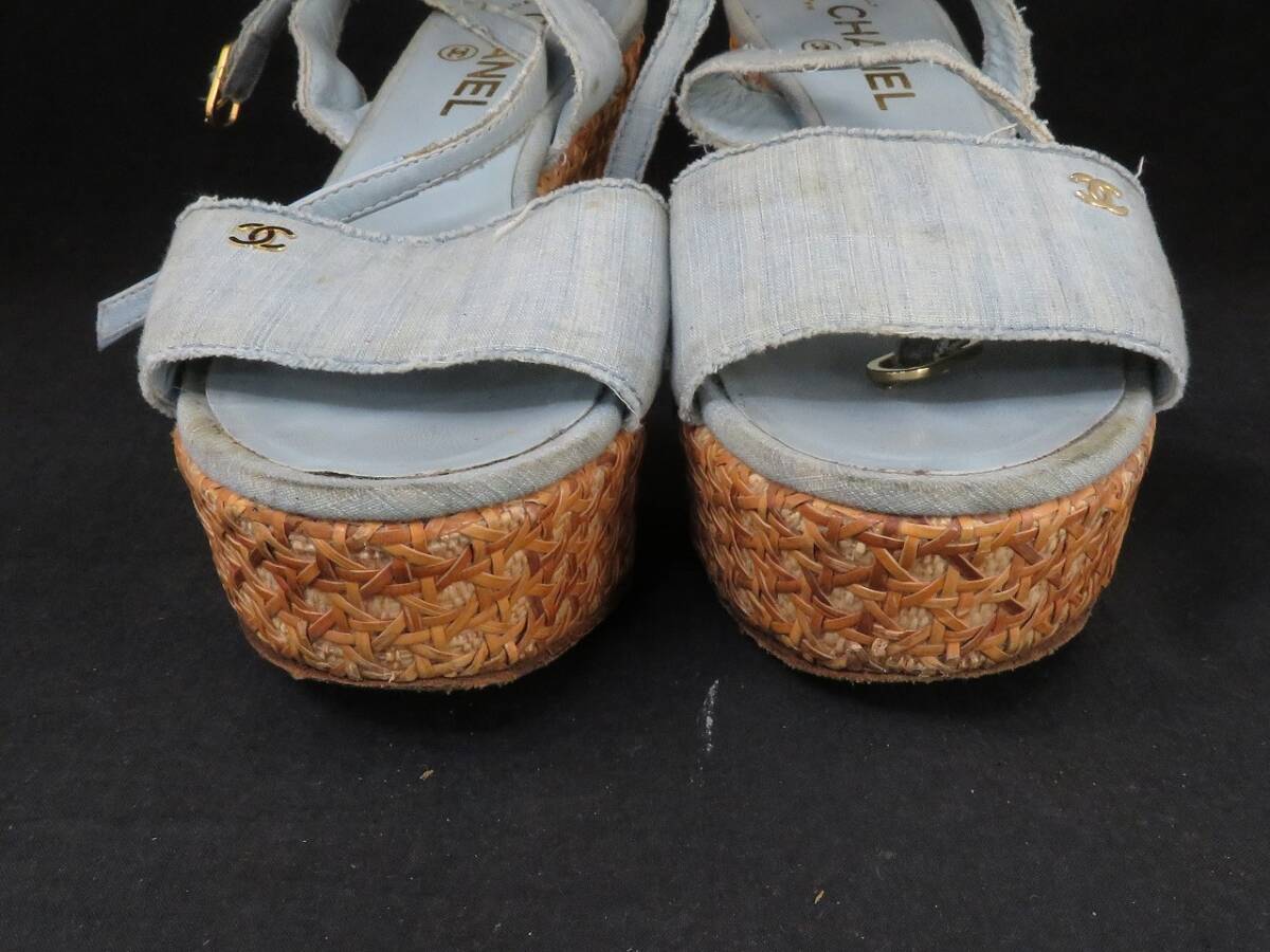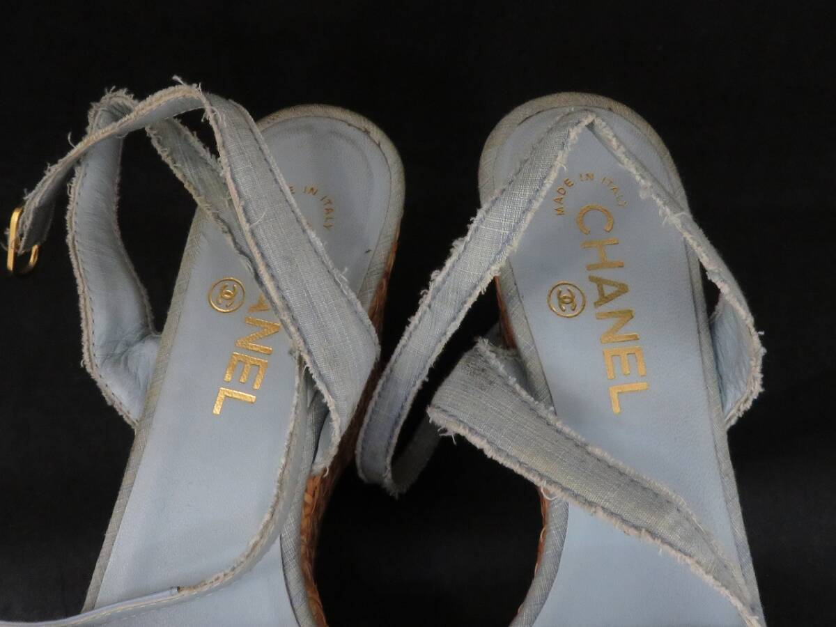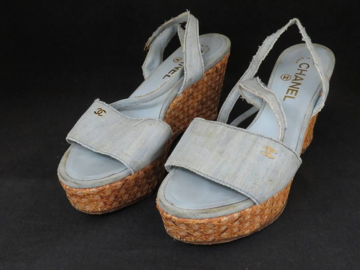 | CHANEL シャネル ココマーク オープントゥ アンクルストラップ ウェッジソール サンダル 37 1/2 | ||