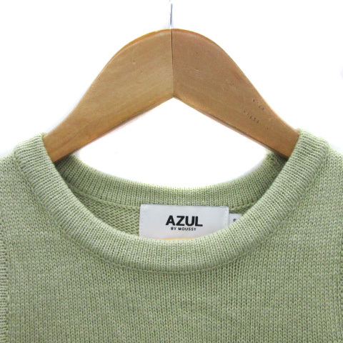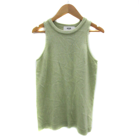 アズールバイマウジー AZUL by moussy ニット カットソー ノースリーブ ラウンドネック 無地 S ライトグリーン /YS31 レディース