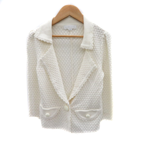 ジルスチュアート JILL STUART カーディガン ニットジャケット ミドル丈 七分袖 オープンカラー S オフホワイト /YK27 レディース