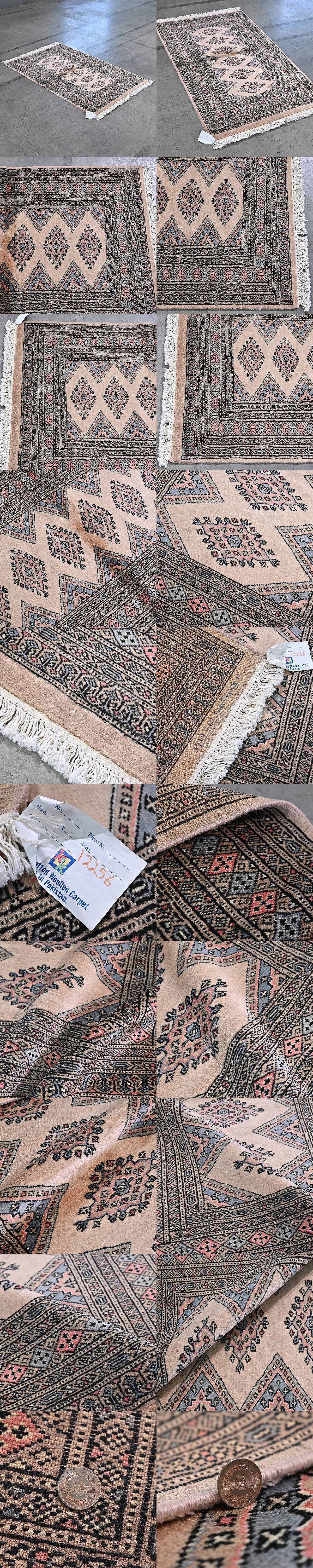 新品 未使用 パキスタン製 手織り ウールラグ 絨毯 ブハラ柄 ダイヤ型 ギュル文様 ハンドノット 羊毛 カーペット 応接室 リビング P-67