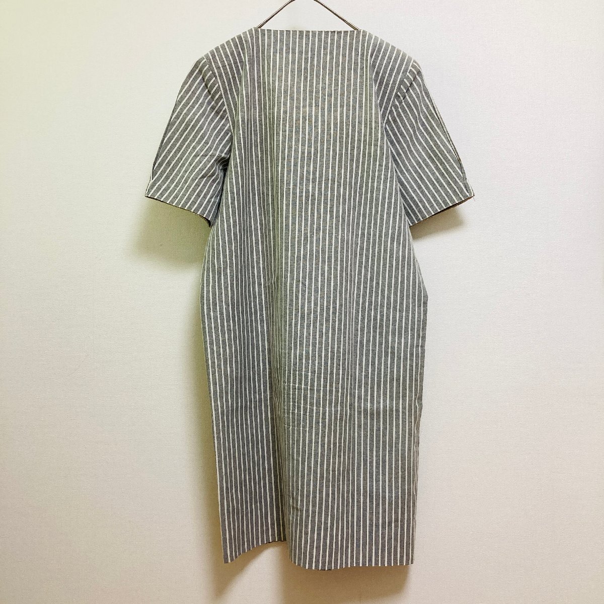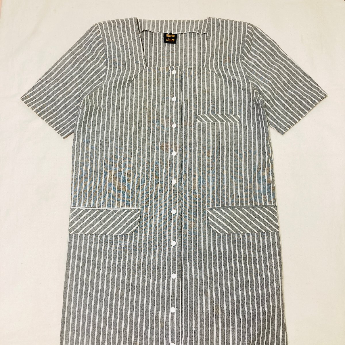 marie claire マリクレール フロントボタン タイプ ワンピース ストライプ グレー/ホワイト