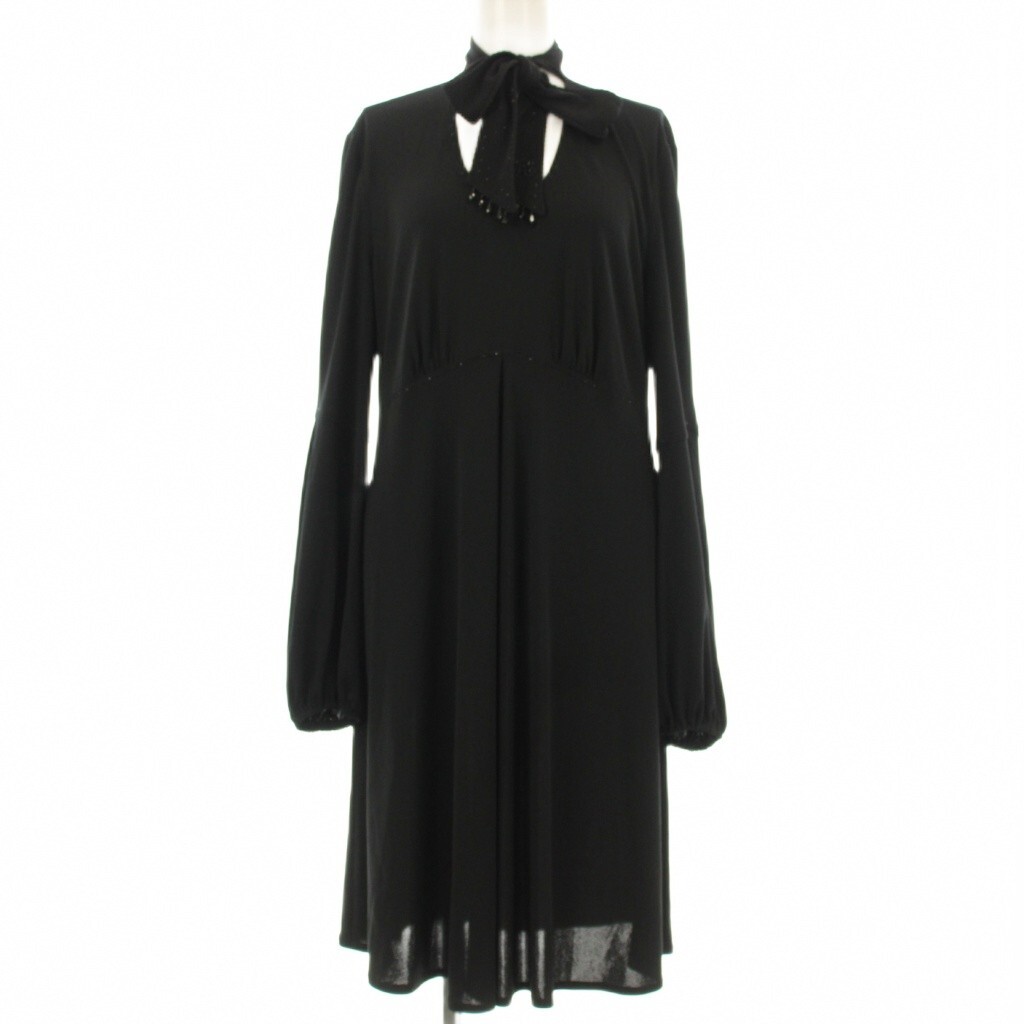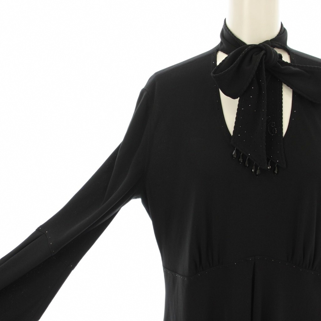 イタリヤ 伊太利屋 ワンピース ロング 長袖 ボウタイ ラインストーン 9 黒 ブラック 190028-F0H /OR レディース