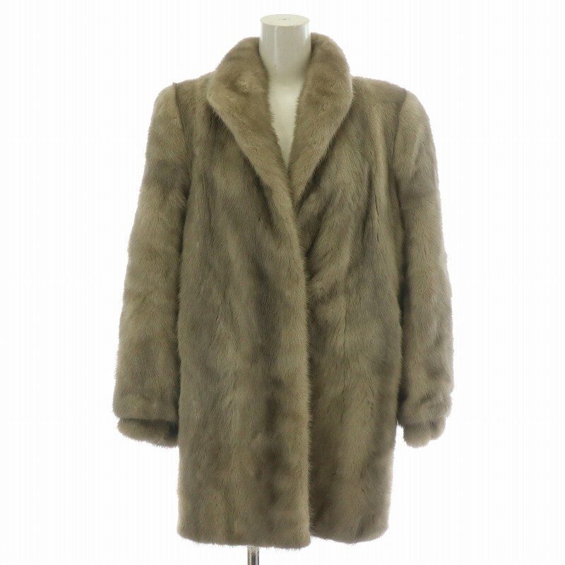 ファーコート ハーフ ミドル サファイアミンク 毛皮 総裏地 レース 刺繍 11号 大きいサイズ 灰 グレー /MP ■GY18 レディース