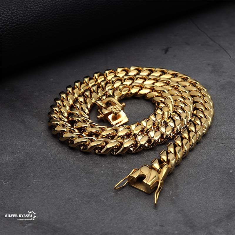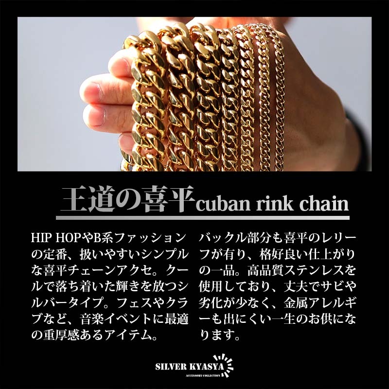 HIP-HOPアーティストがこよなく愛する定番のマイアミキューバンリンクチェーンのネックレスタイプ。喜平チェーンとも呼ばれるこのネックレスは重厚感が首元のアクセントに最適なアイテムです。