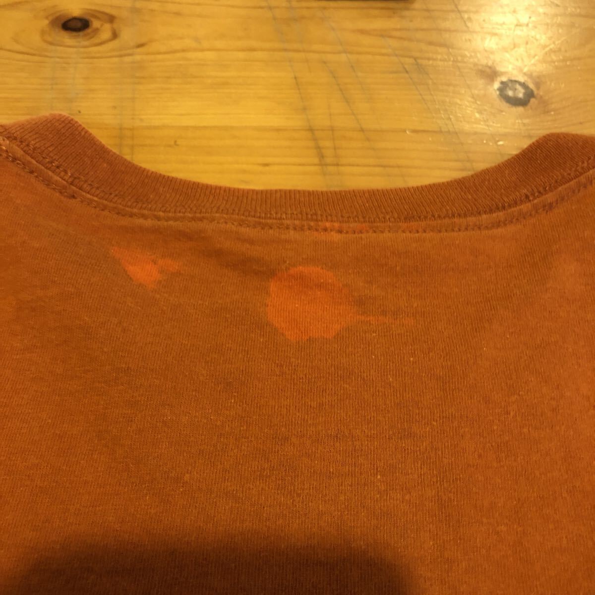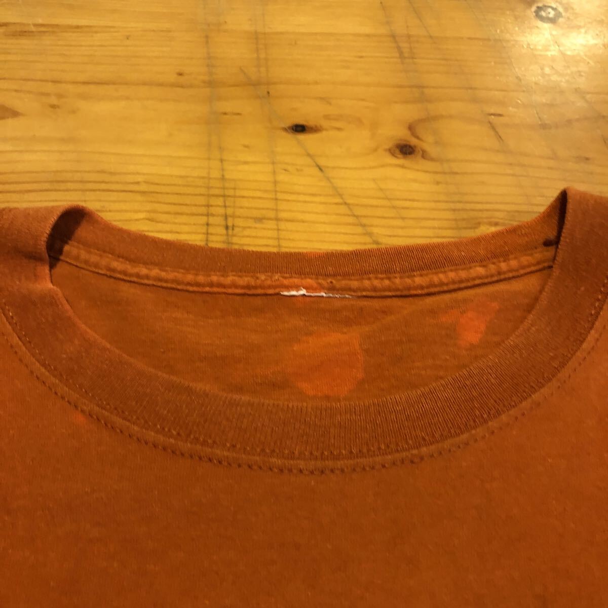 全体的な色褪せと首元に色抜けがあります(写真参照)が破れ等はありません。