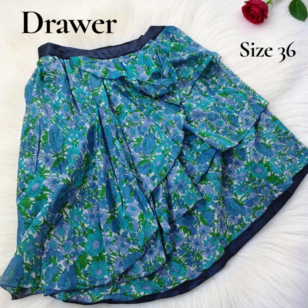 Drawer(ドゥロワー)花柄フリル巻きスカート/Size 36(S相当)です。