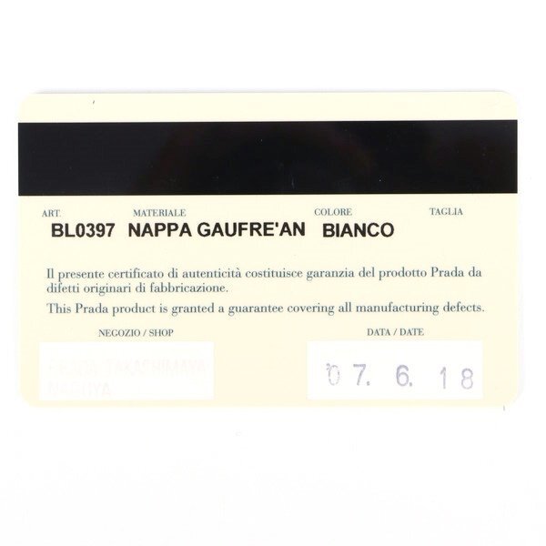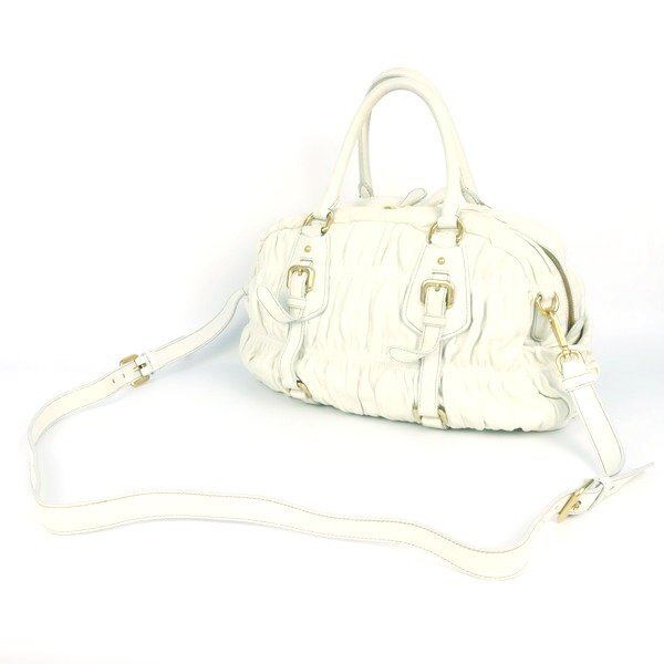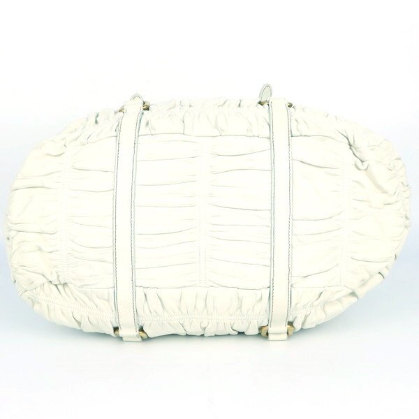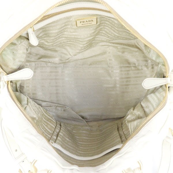 Bランク【プラダ】レザーハンドバッグ/ナッパゴーフル/ホワイト/BL0397/ビアンコ