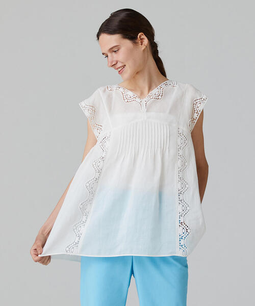 * TOMORROWLAND ラミーエンブロイダリー Vネックブラウス ¥ 23,100 レースディティールが素敵な麻素材のホワイトブラウスです♪(* ´ ∇ ` * ) 以下、公式様より抜粋させていただきます。 今期のテーマである『マルタ島』の美しい教会の内装から インスピレーションを得て作り上げた、エンブロイダリー素材のブラウス。 ラミー特有の美しい光沢と軽やかさが魅力です。 着用するほどに変化する柔らかくしなやかな風合いをお楽しみいただけます。 フロントに施した細かなタックやバックヨークのギャザーが生み出す ふんわりとしたフォルムで軽やかな印象の一着。絶妙な丈感でスリム・ボリューム どちらのボトムスとバランスよく合わせていただけます。 ほど良い甘さで大人のフェミニンスタイルにぴったりのアイテム。 ◇ コンディション 紙タグ付き、未使用の美品です。 ※ 個人保管品ですので、ご理解ある方のみお願い致します。 ◇ カラー ・・・ ホワイト ※変色のように見える箇所は光の加減です。 ◇ 素 材 ・・・ 画像の品質表示ラベルでご確認下さい。 ◇ 裏 地 ・・・ なし 透け感あり ◇ 仕 様 ・・・ 背中にワンボタン付き ◇ 公式サイズ ・・・ 36 ◇ 平置き実寸はおよそ下記の通りです。(センチ単位) 身幅:46~56ほど 総丈(肩上~裾までを計測)70(前は8cmほど短いです) ゆき丈:27 ☆ コーデに使用した他アイテム・アクセサリー類は付属しません…☆ *^^* ☆ 個人保管品ですので小さな見落としの際にはご容赦下さい。 「そんなの、全然いいさ♪」というおおらかな方のみ、ご入札をお願い致します…☆ ☆ お洋服の撮影につきましては床に直接置かずに壁紙や木板を敷いて撮影しております♪ 。。。。。。。。。。。。。。。。。。。。。。。。。。。。。。。。。。。。。。。。。。。。。。。。。。。。。。 ★ その他、洋服・クツ・雑貨 など よろず出品中。 ほとんどのお品は、同梱可能です♪ どうぞお越しくださいませ…☆