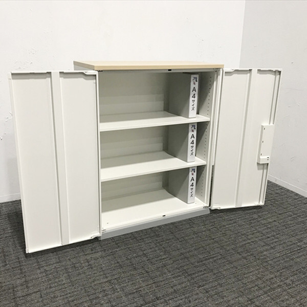 ■取り扱い番号 CR-876122B ■仕様 メーカー : イナバ 製品名 : 両開き書庫 TF 天板付 481332 色素材 : オプティホワイト 外寸 : 幅900mm 奥行き460mm 高さ1125mm ランク : Bランク ■特徴 ベース付 棚板2枚 天板:ライトウォールナット 各段にA4ファイルが収納出来ます。取っ手が大きくて握りやすく、ドアは180°開きが可能なので狭い通路でも邪魔になりません。 |