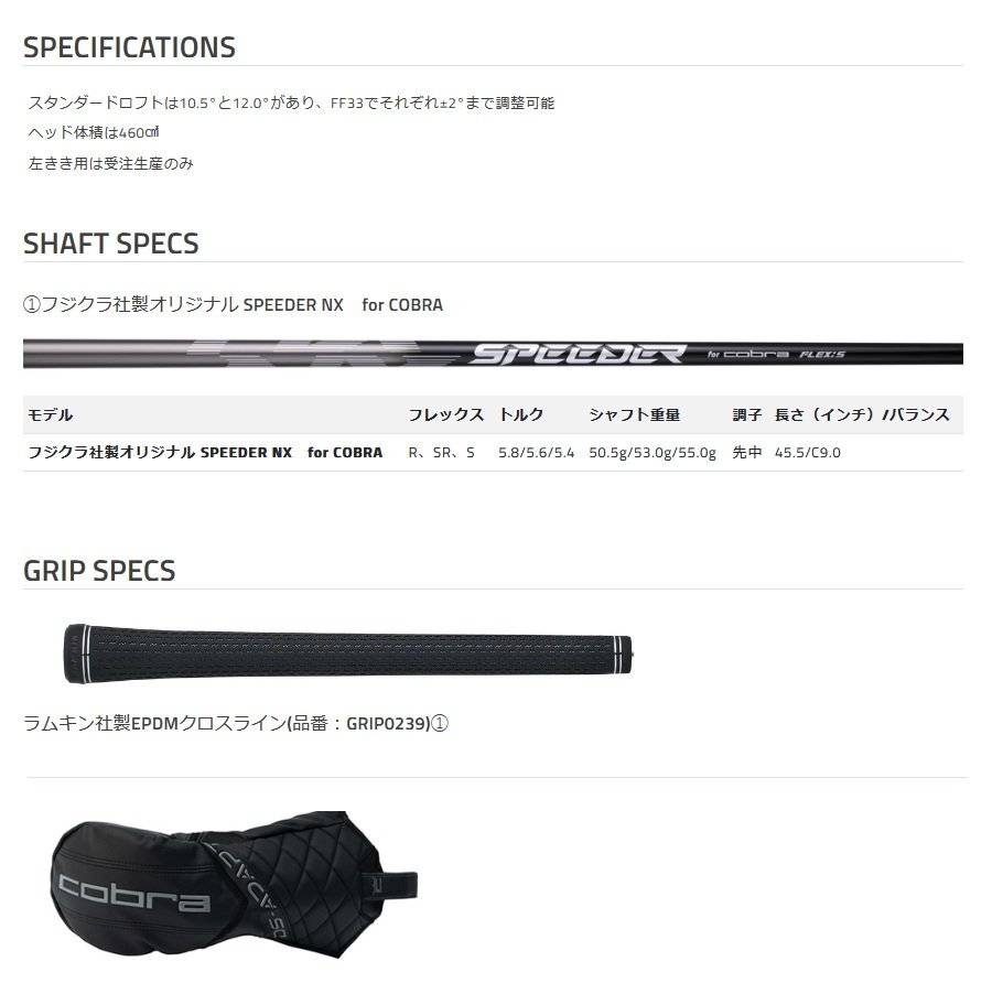 | 商品名 | 新品 コブラ DS-ADAPT MAX-D 10.5° 純正カーボン SPEEDER NX for COBRA (SR) 日本仕様 | ||||