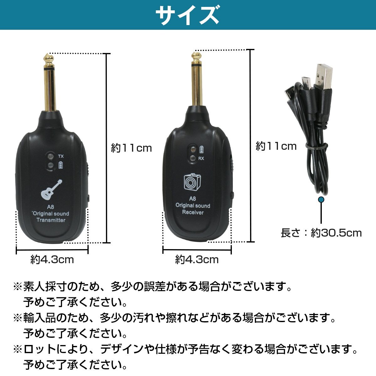 ギター ベース エレキ 楽器 ワイヤレス トランスミッター レシーバー セット UHF 充電式 最大50M 高性能 オーディオ 国内在庫