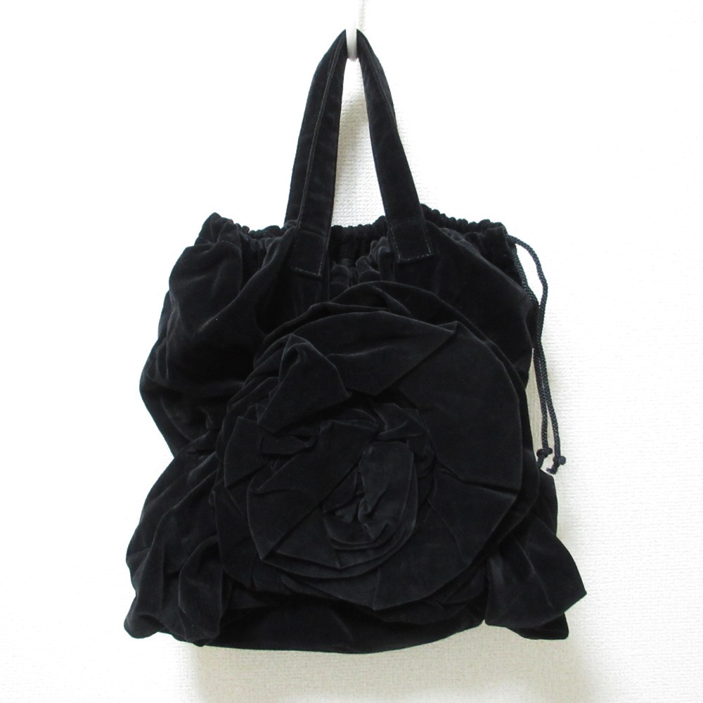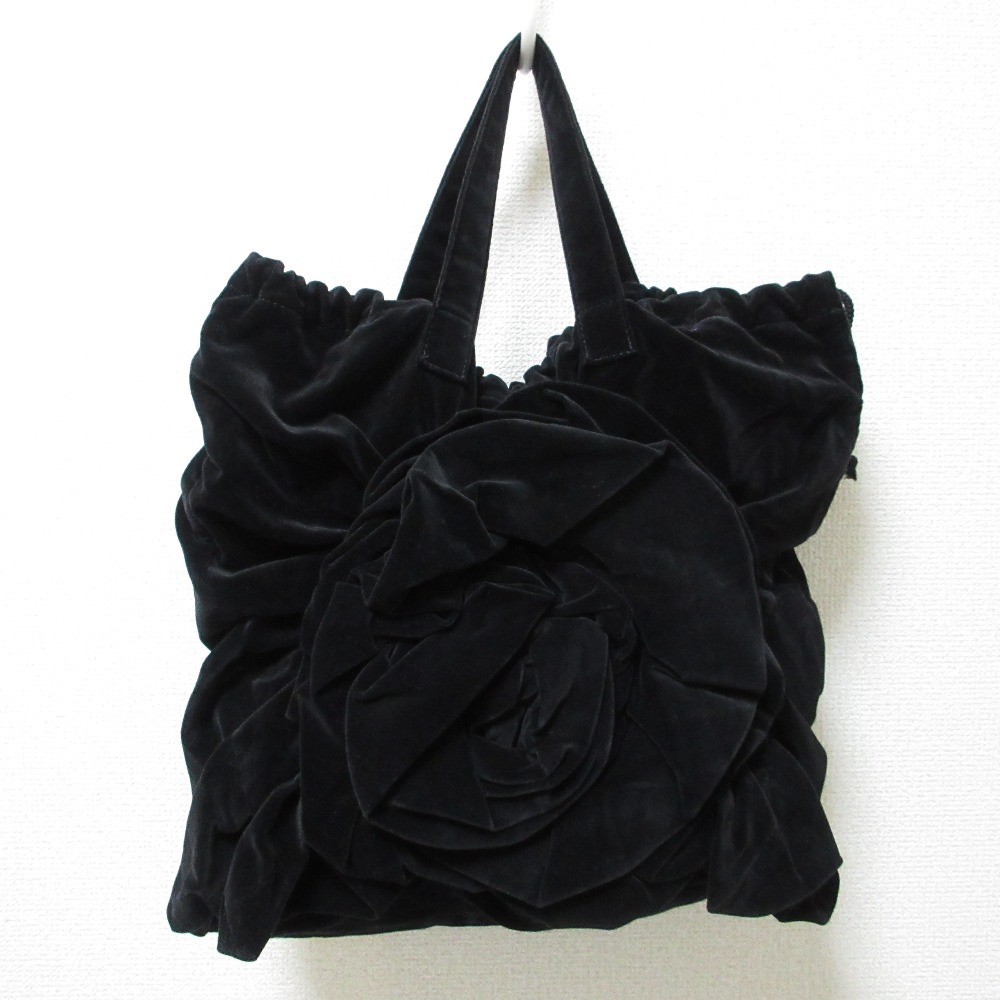 良品 COMME des GARCONS コムデギャルソン ローズデザイン ベルベット コットントートバッグ ブラック