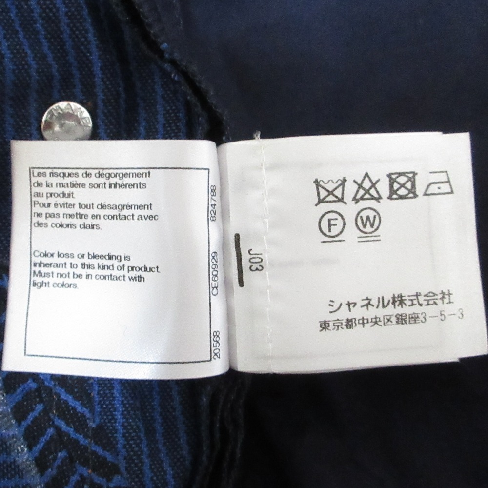 商品名:CHANEL シャネル ココマークボタン サイドココマーク ストライプ柄 ショートパンツ P55909 size34 ブルー×ブラック