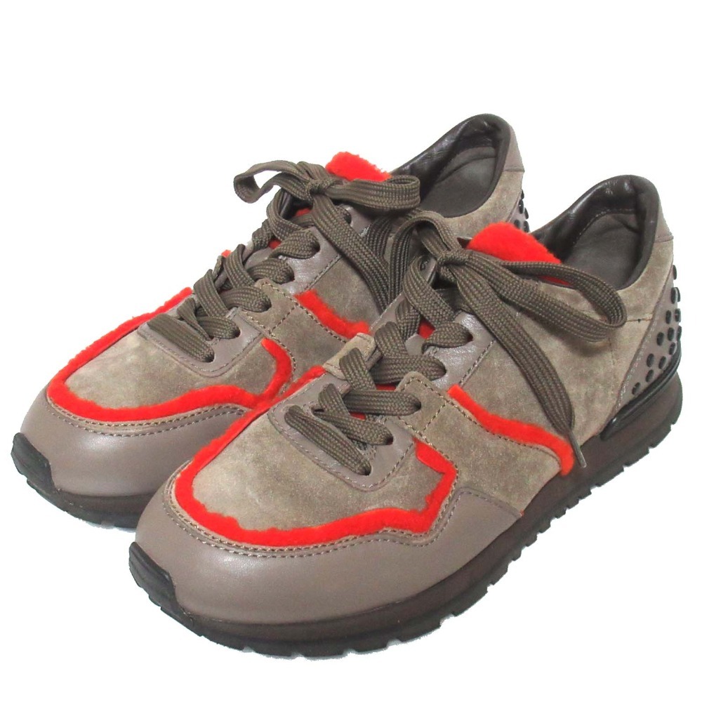 商品名:TOD'S トッズ MONTONE SPOILER MATT スエード レザー ローカット スニーカー 6サイズ 25cm相当 カーキブラウン オレンジ