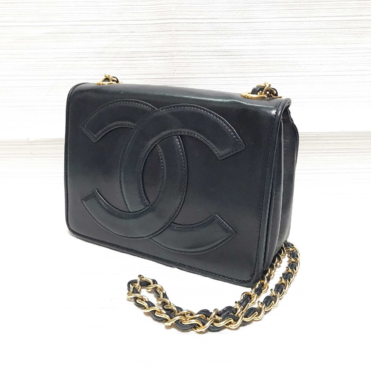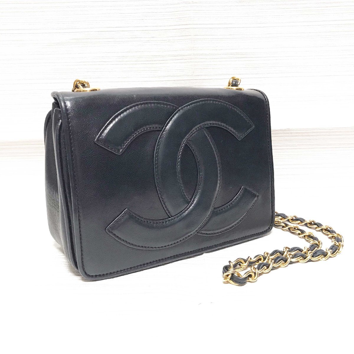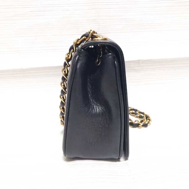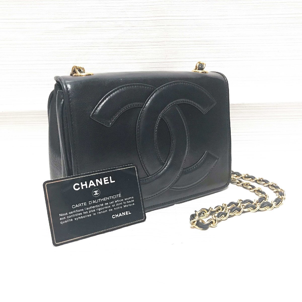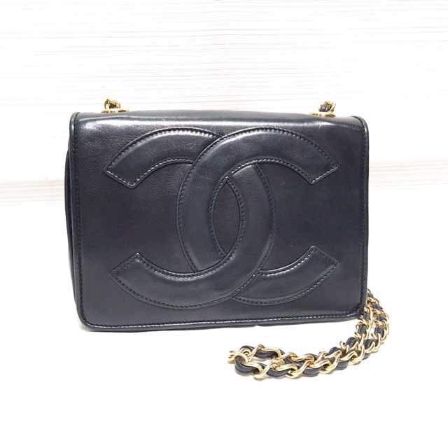 CHANEL シェネル チェーンショルダーバッグ ココマーク ラムスキン ブラック ギャランティカード有