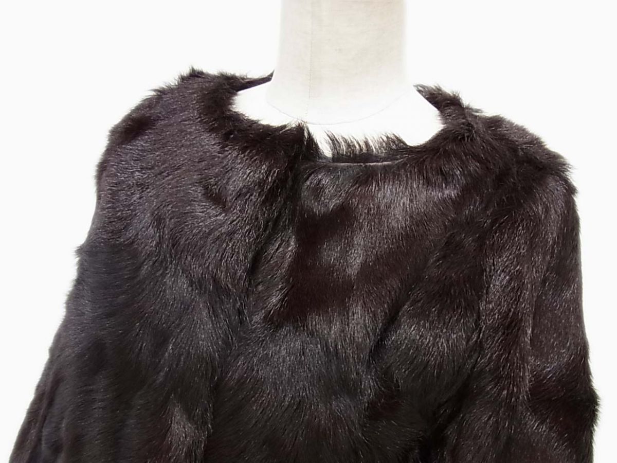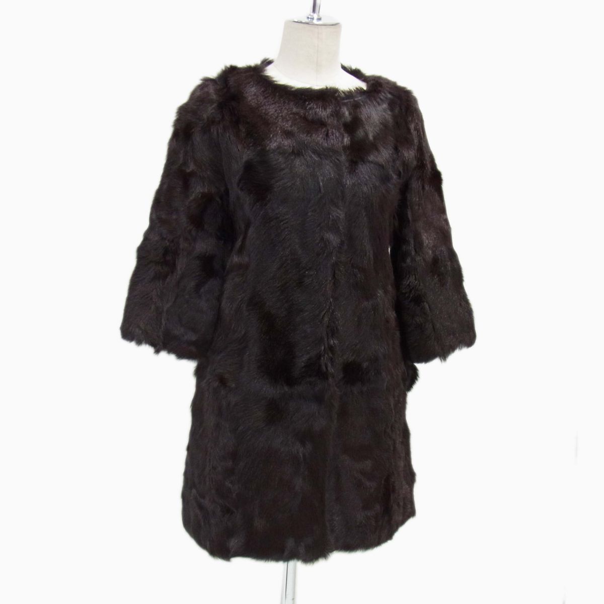 毛皮 定価8万◇URBAN RESEARCH/ROSSO ゴートファー コート ノーカラー ダークブラウン アーバンリサーチ/ロッソ レディース