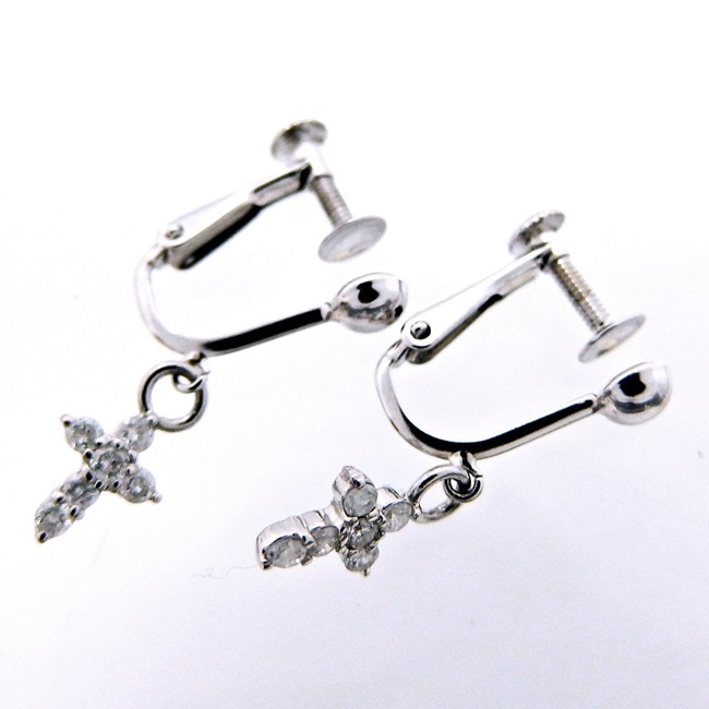 | *ピアス *素材:K14WG ダイヤモンド0.15ct/0.15ct *クロスモチーフサイズ(約):縦7.8mm×横5.0mm *重さ(約):1.9g *ランク:S ★新品仕上げ済み ★バネが完全には閉じせん ※もっと細かい状態につきましては、お気軽にお問い合わせください。 PND 29292