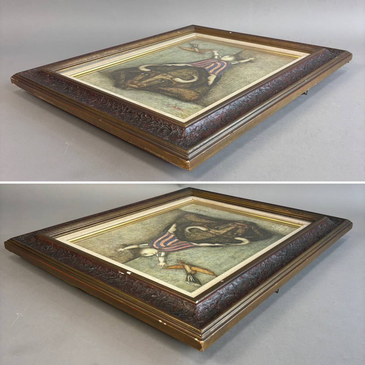 古い物となります為、経年・使用・保管に伴う、額のキズ・色褪せ・黄ばみ・スレ・カビ・汚れ等のイタミが見受けられます。