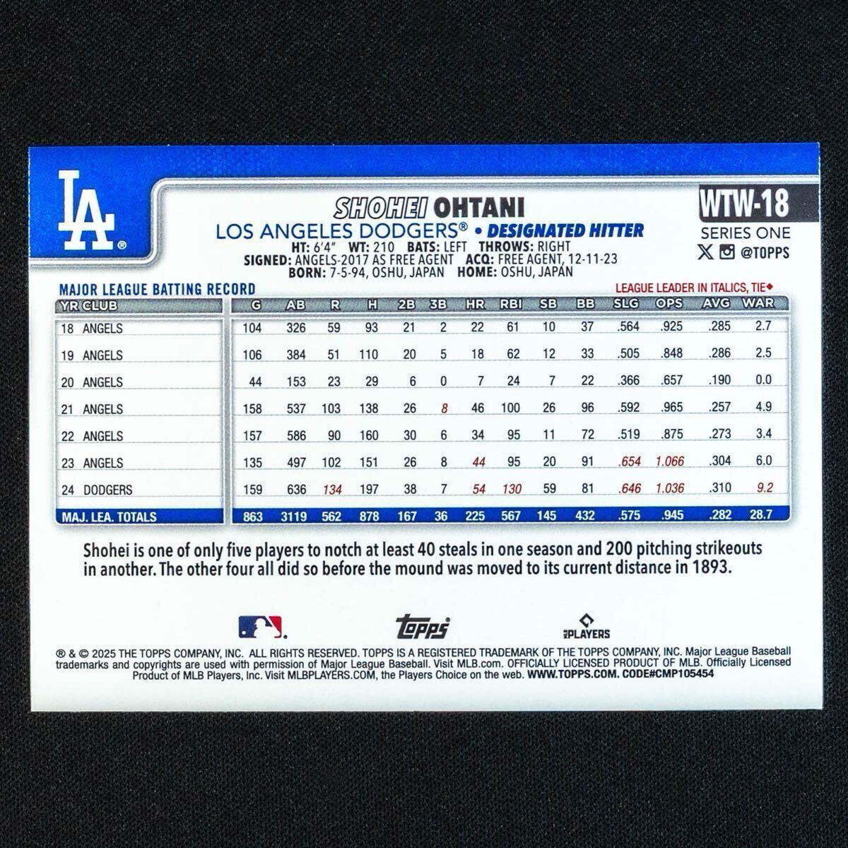 2025 Topps Series 1 Celebration Mega 大谷翔平 No.WTW-18 SP ショートプリントイメージバリエーションカード 出現率1/12800パック シリーズ1セレブレーションメガ