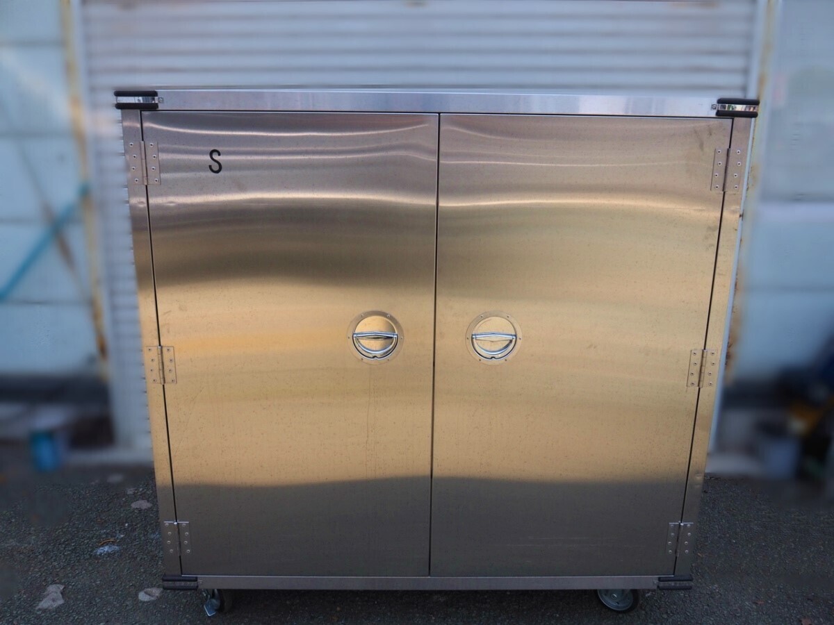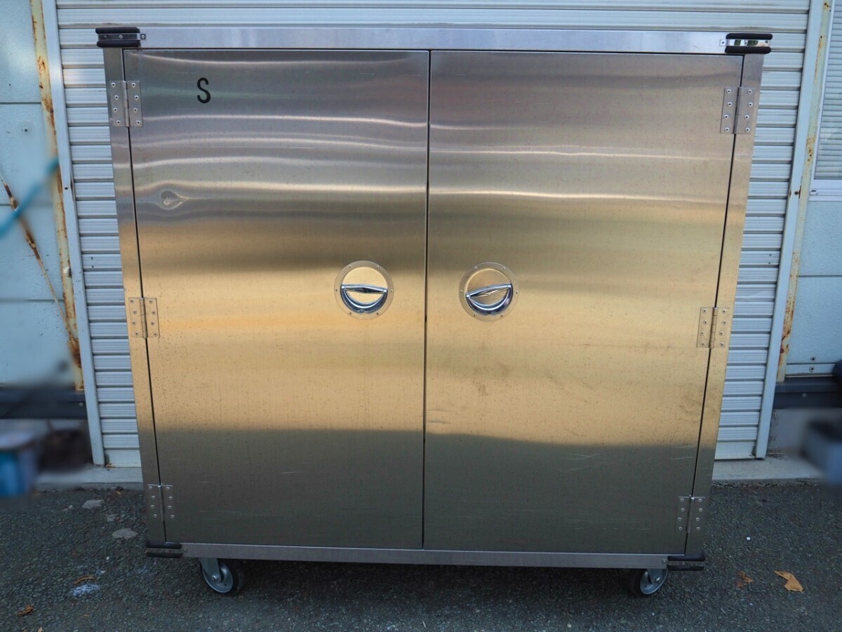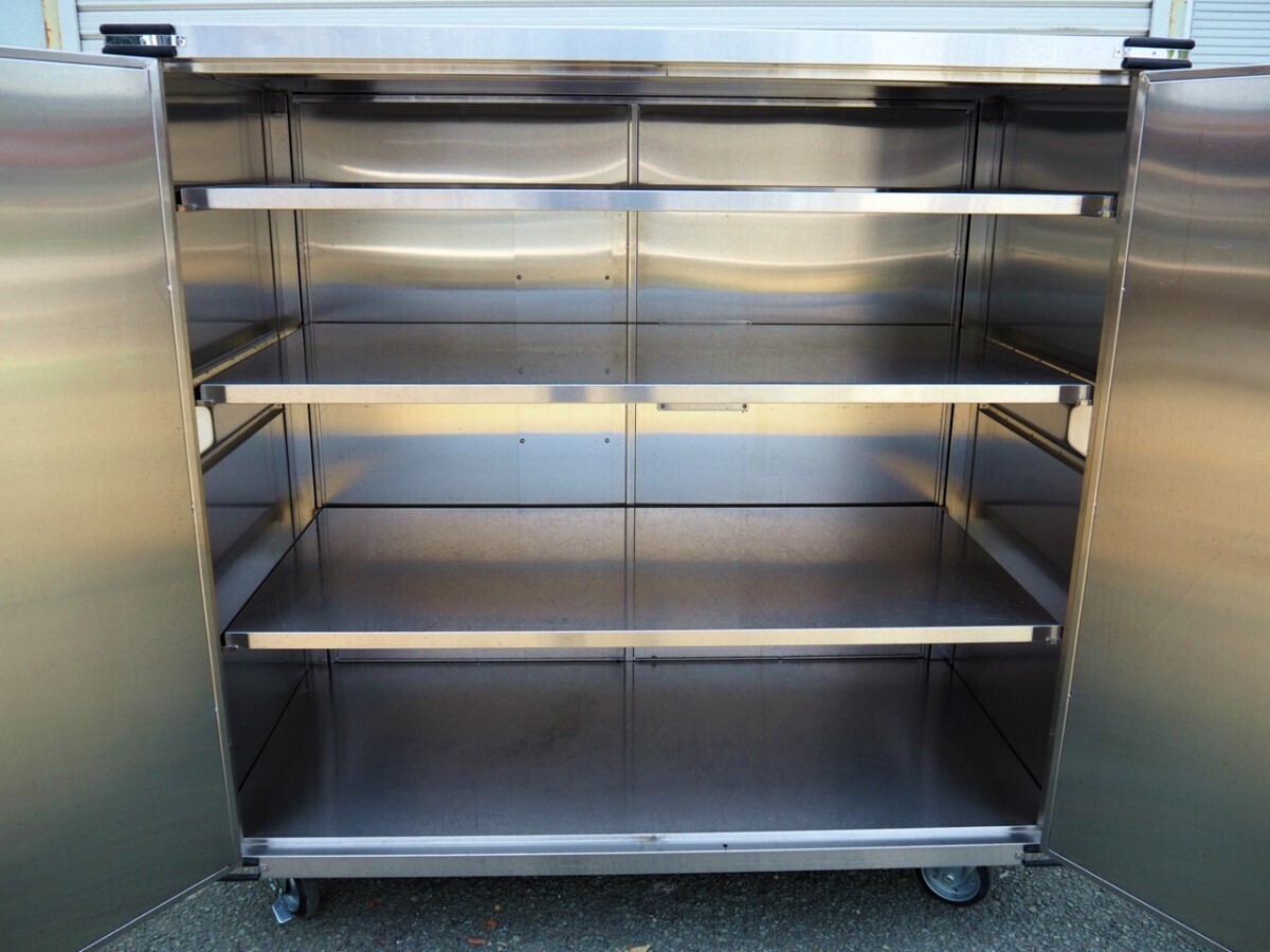 3T250703Y【熊本県/引取限定】 配膳コンテナ キャビネット ステンレス 収納 中板3枚 キャスター付 外寸幅150×奥行75×高さ154cm