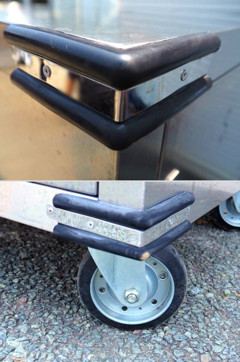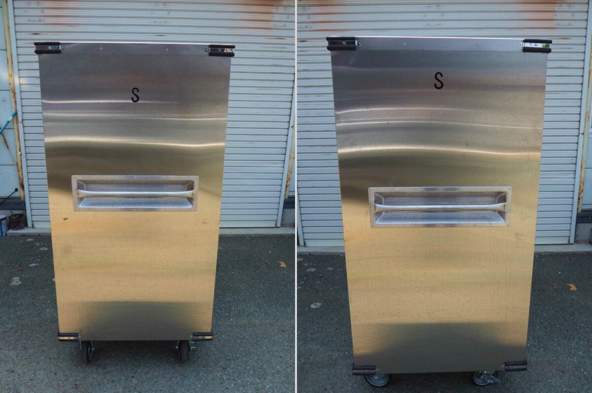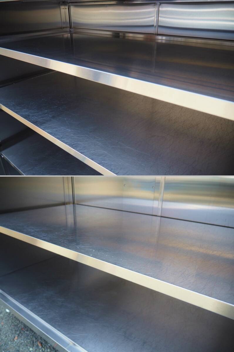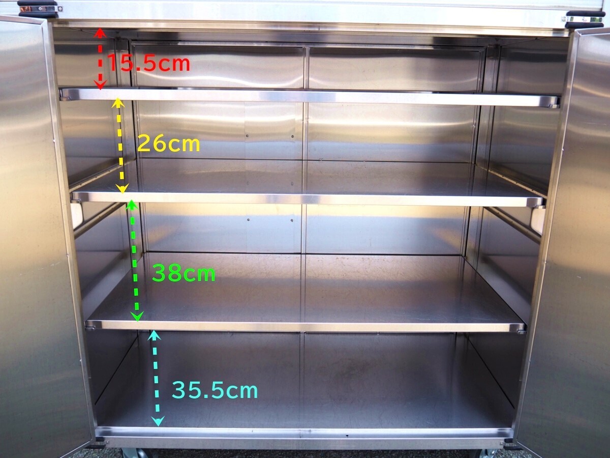 3T250703Y【熊本県/引取限定】 配膳コンテナ キャビネット ステンレス 収納 中板3枚 キャスター付 外寸幅150×奥行75×高さ154cm