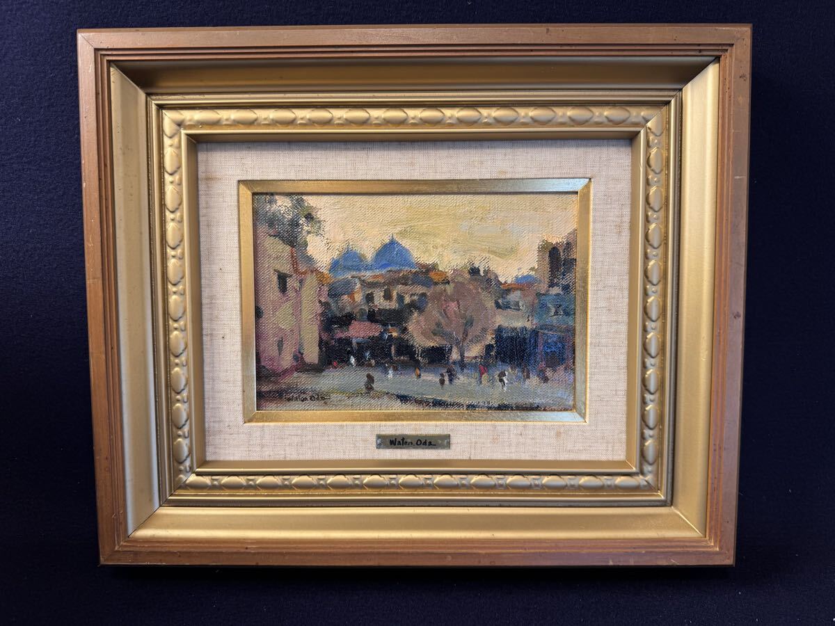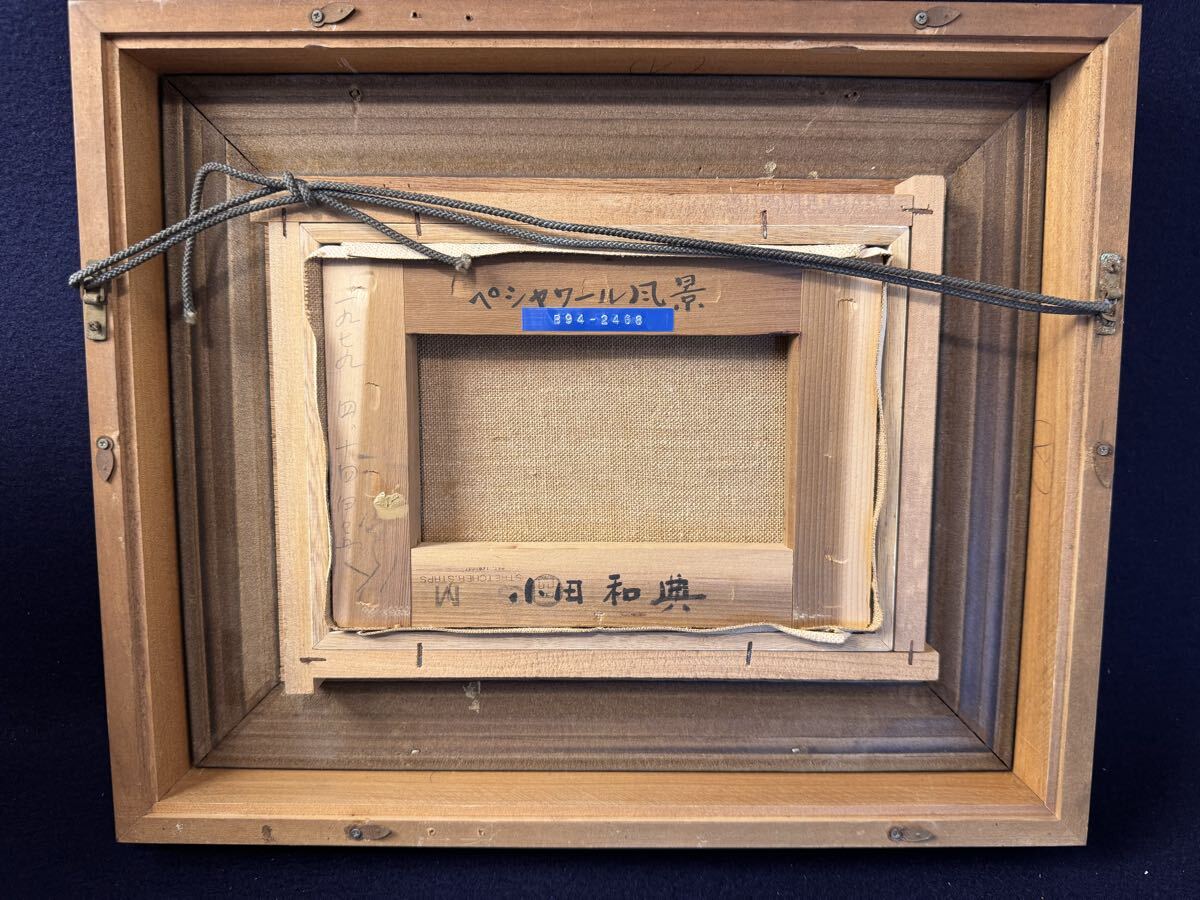 真作 小田和典 『 ペシャワール風景 』 油彩 SM号 ネームプレート付き シルクロード 福岡県 八女市 油絵 額装 風景画 パキスタン