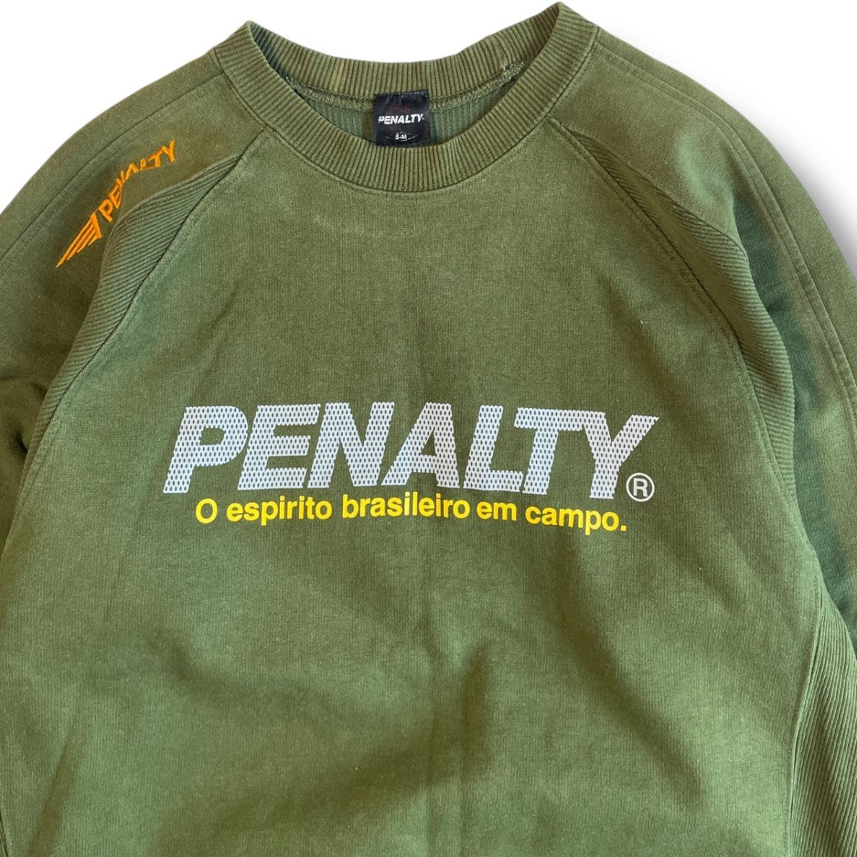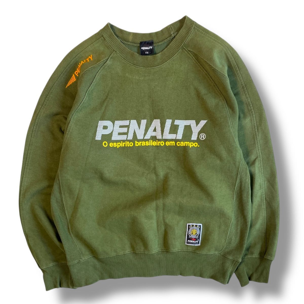 希少★国内正規★ Penalty ペナルティ 長袖 ロゴ 両面 プリント スウェット クルーネック S-M 緑 トレーナー サッカー フットサル ジャージ