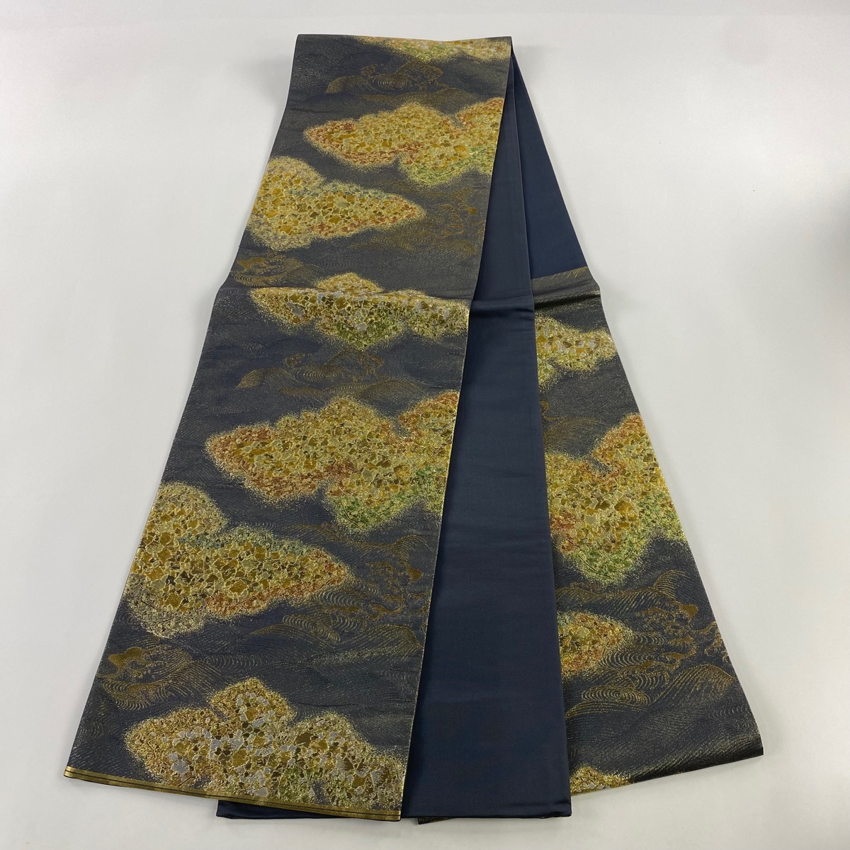 | 袋帯 美品 秀品 箔散らし 雲文 金銀糸 箔 灰紫 六通 正絹 【中古】 |