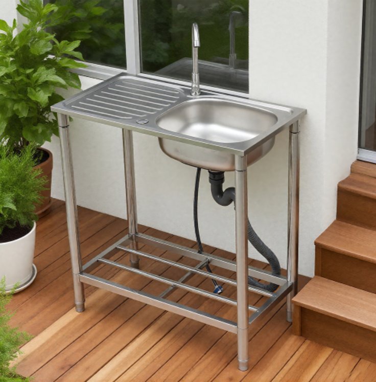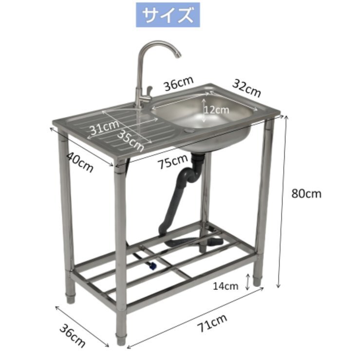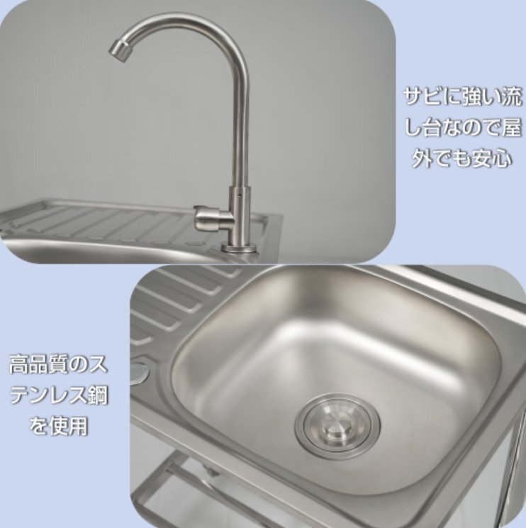 【国内発送】流し台 屋外 ステンレス 水栓付 蛇口付き シンク アウトドア 幅広 水栓付き キッチン 屋外用 ステンレス流し台 ステンレスキッ