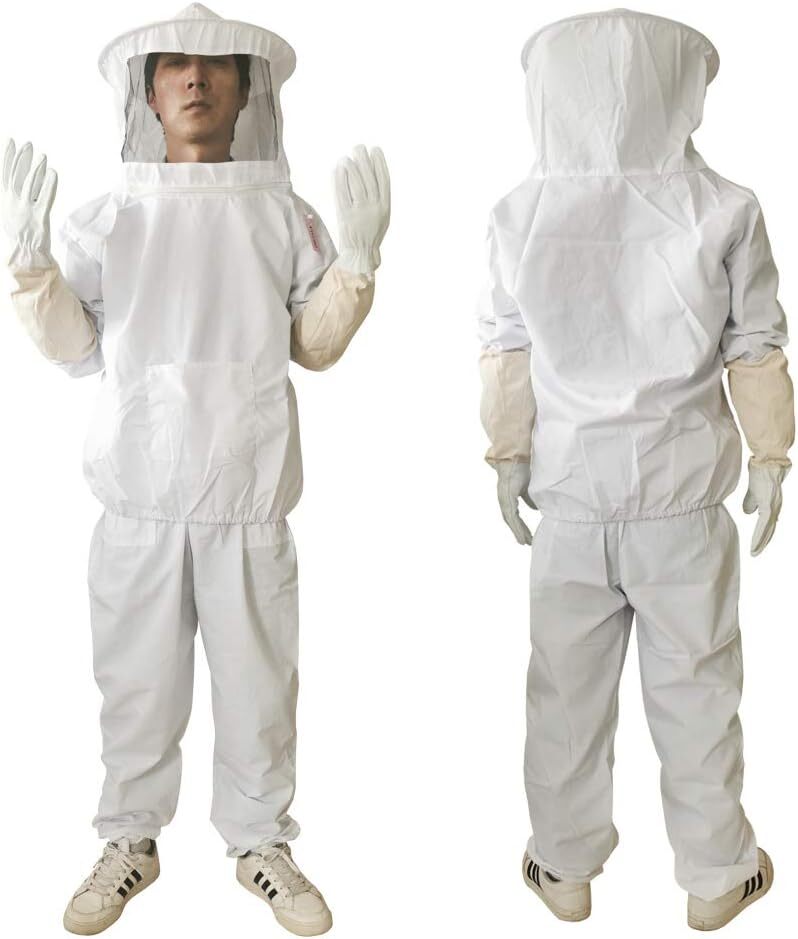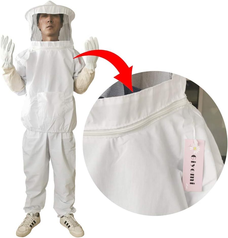 [Giyomi] 養蜂用 蜂防護服 蜂駆除 フェイスネット付 上下服 & 手袋 3点セット 蜂巣 害虫駆除 虫除け 鉄壁ガード 作