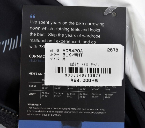 防風/軽量★2XU★ツータイムズユー エアロ サイクル ジャケット size:M MC5420A ブラック/ホワイト