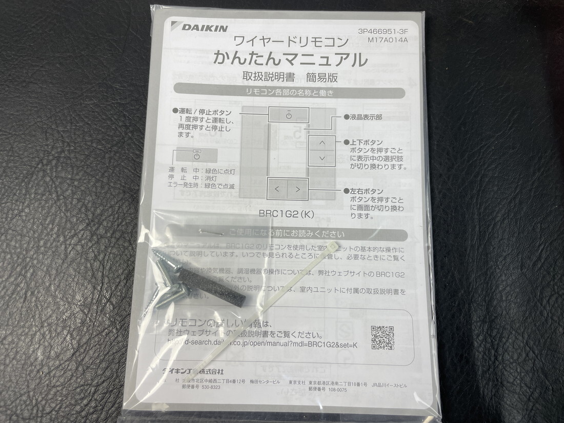 【未使用】ダイキン DAIKIN 業務用エアコン リモコンボックス BRC1G2 ワイヤードリモコン 取扱説明書・取付ネジ付き 管Y1932N