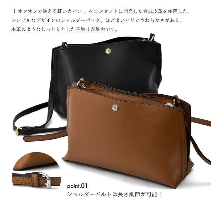 スタッフコメント「 オンオフで使える軽いカバン 」をコンセプトに開発した合成皮革を使用したシンプルなデザインのミニサイズのショルダーバッグ。