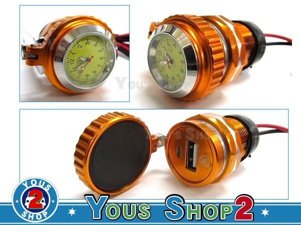 商 品 説 明防水仕様 バイク用 スマホ充電 アナログクロック USB出力搭載 橙