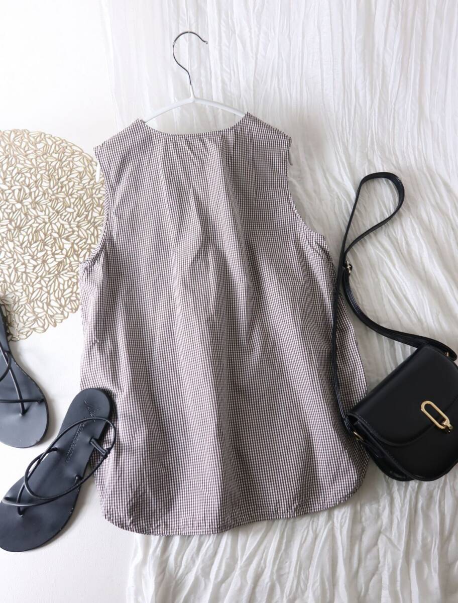 1.2万☆トゥモローランド/マカフィー MACPHEE☆洗える ギンガムチェック コットンブロードノースリーブプルオーバー 日本製☆M-B 4923