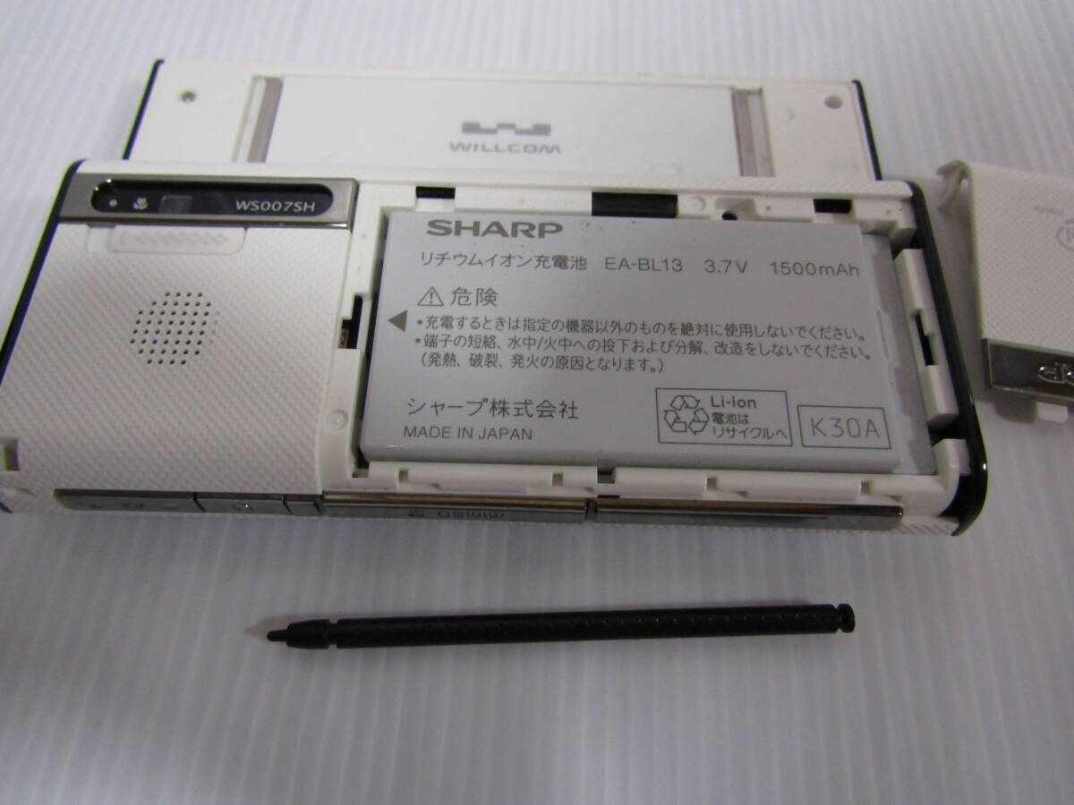 K0566 【ジャンク品】WILLCOM BLADE WS007SH ホワイト 携帯電話本体