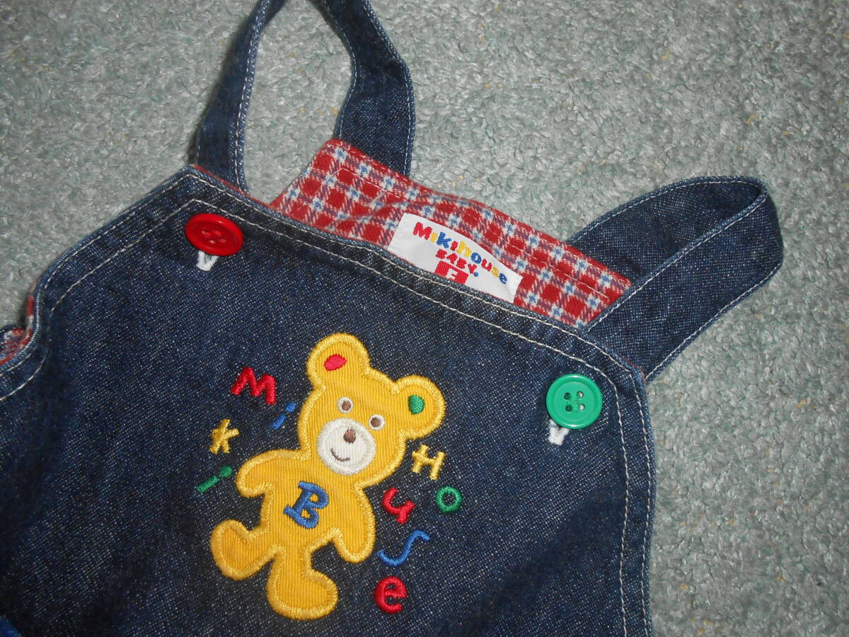 ミキハウスのレトロの大きな熊さん付きダルマオールのつなぎです。