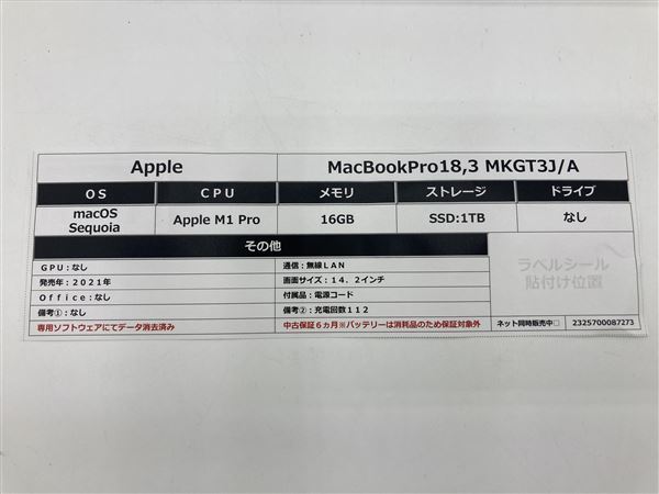 MacBookPro 2021年 MKGT3J/A【安心保証】 |