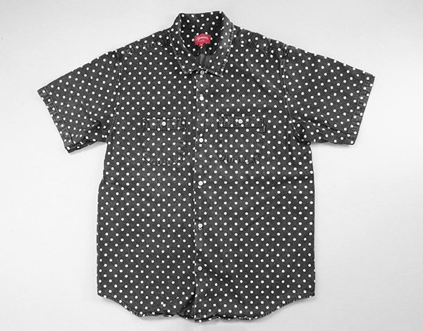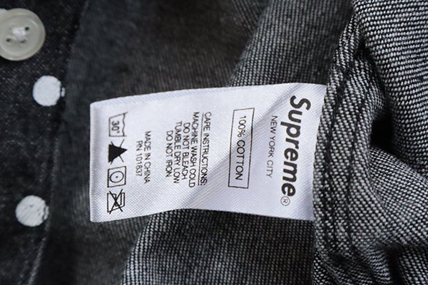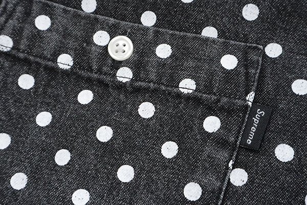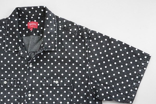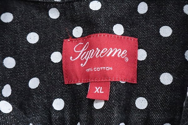 Supreme ◆18SS Polka Dot Denim Shirt デニム 半袖シャツ 黒 XLサイズ ロゴ刺繍 ドット 水玉 プリント シュプリーム ◆MU14
