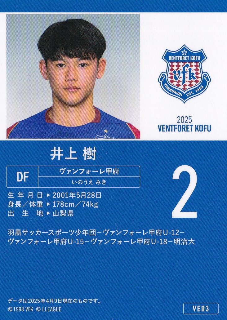 ヴァンフォーレ甲府 2025 オフィシャル VE03 井上樹