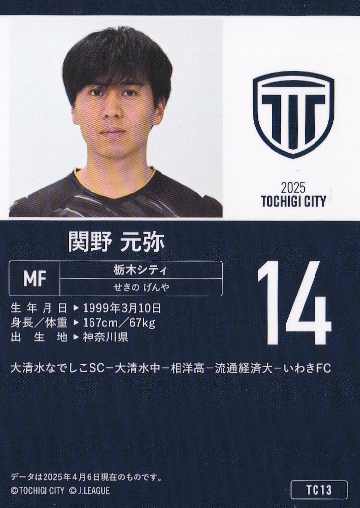 栃木シティ 2025 オフィシャル TC13 関野元弥