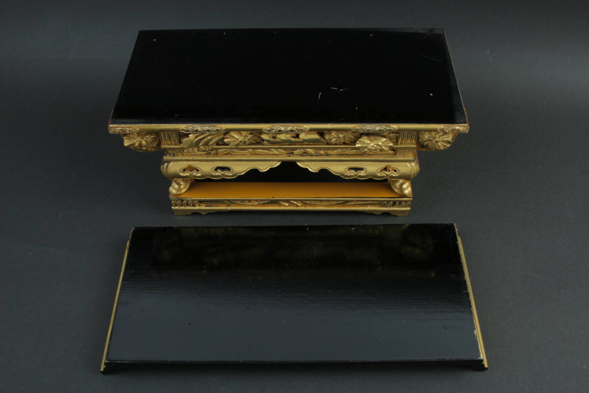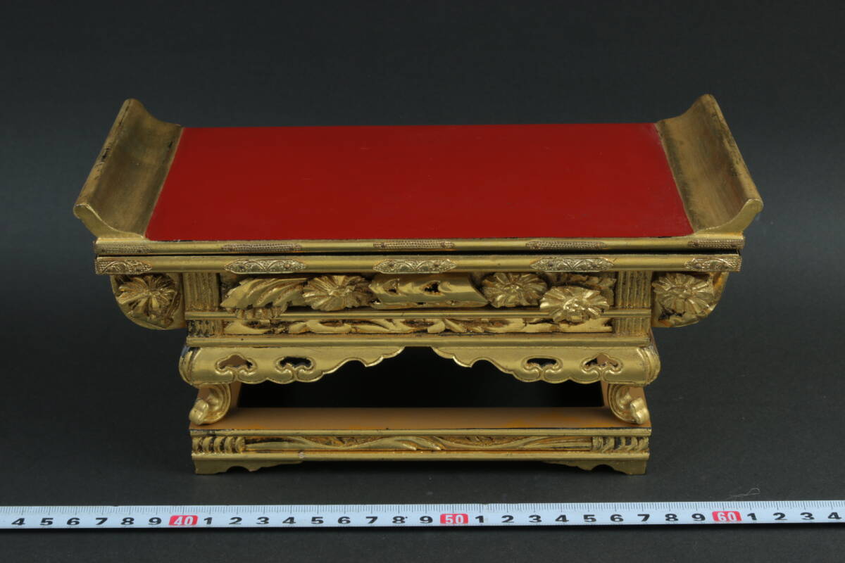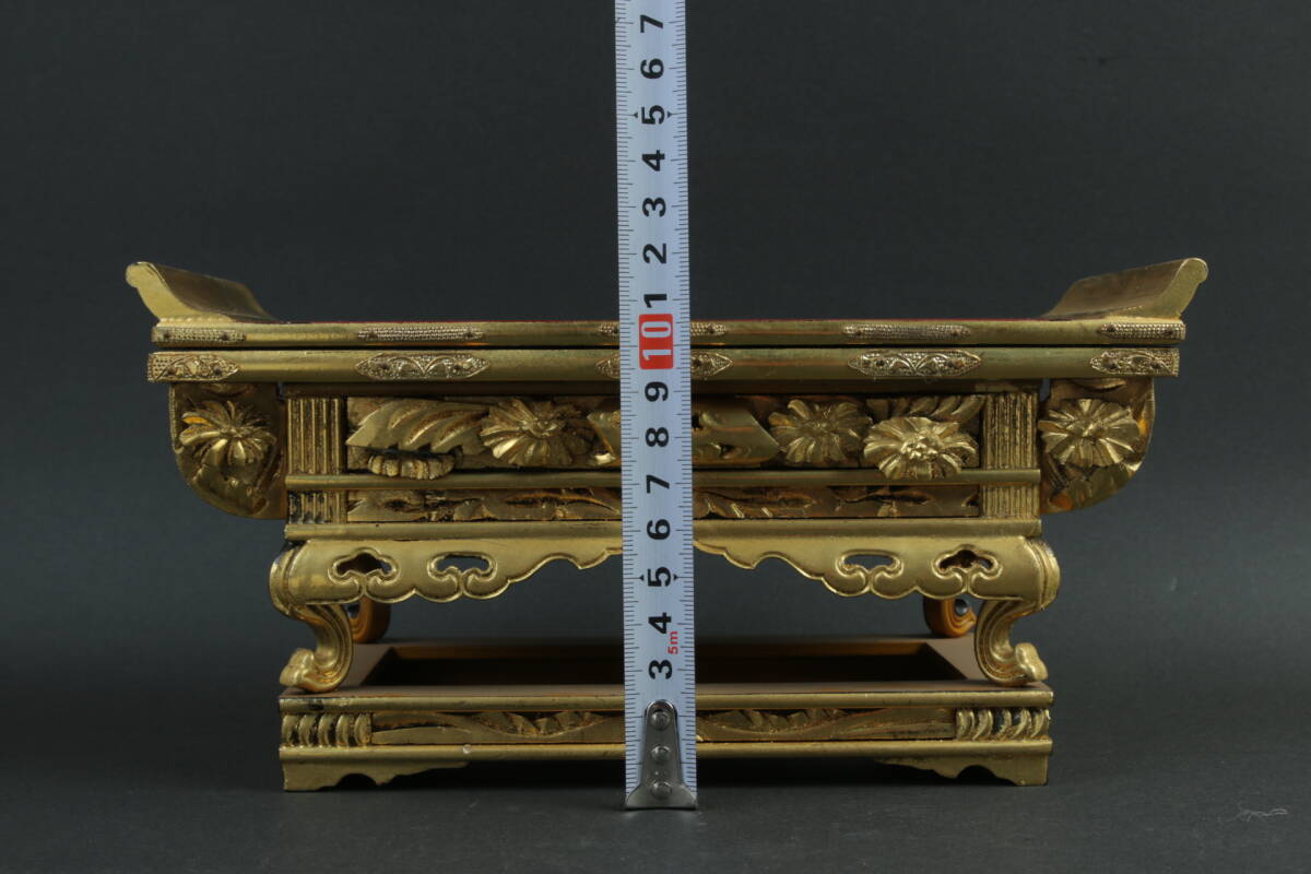 S0020 大谷派 焼香机 上前彫 上卓 8寸 24cmx11cmx12cm 金箔押金具打 仏具 仏像 仏教美術 前卓