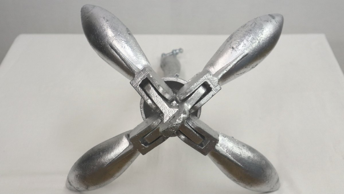 ![]() | 軽量小型船舶用アンカー。 使用しない時は爪の部分が折りたためるので、移動時にはコンパクトになるため大変便利。 |