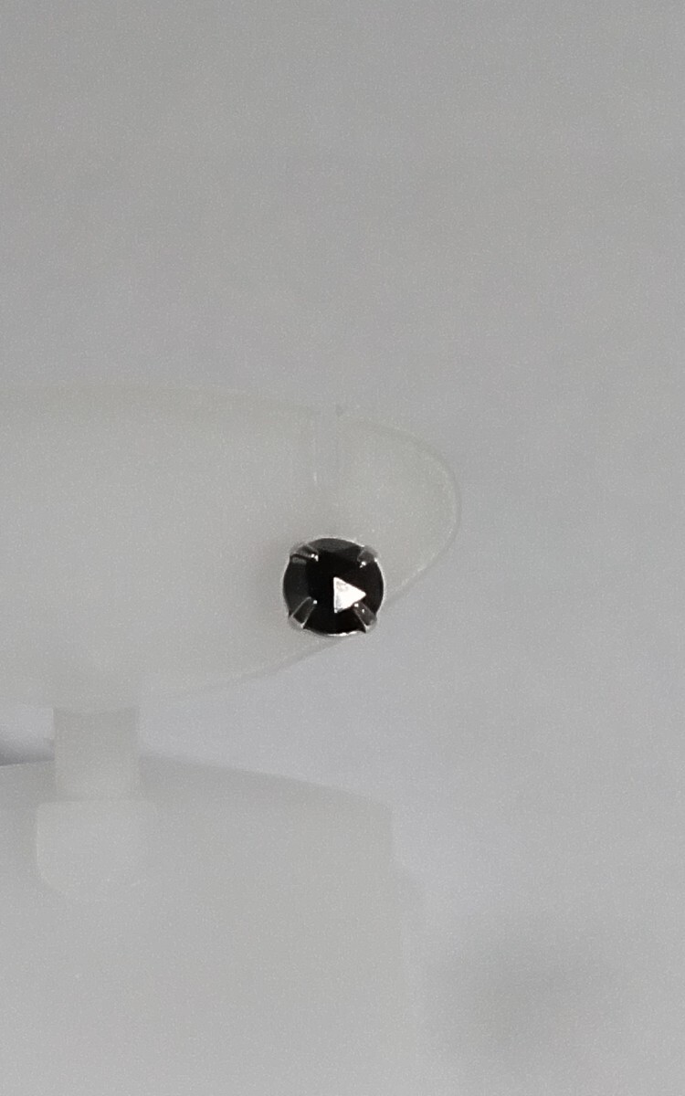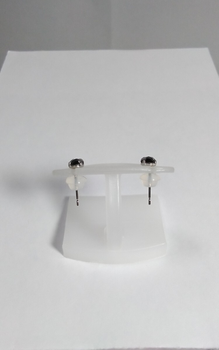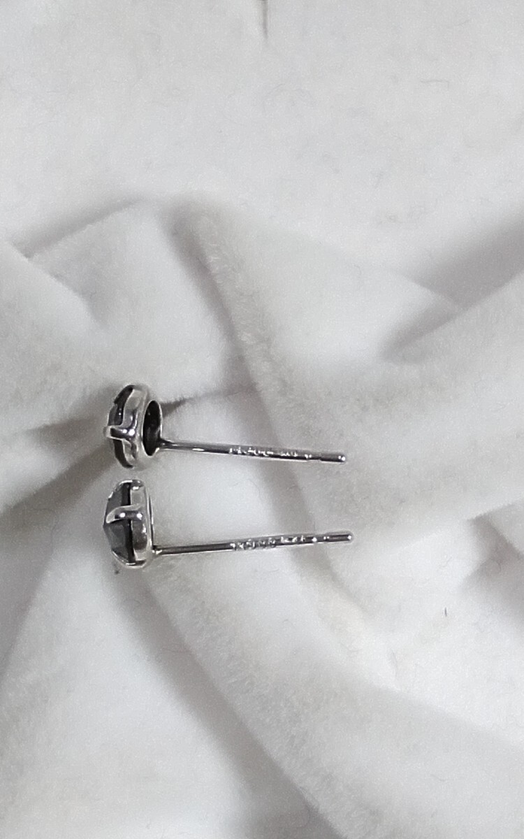 材質 プラチナ900 ブラックダイヤ合計0.38ct.(0.20ct.+0.18ct.) 大きさ約3.9~4mm シリコンキャッチ留め 軸にPt900・個々に0.20・0.18の刻印有り 重量0.3g(シリコンキャッチ除く)